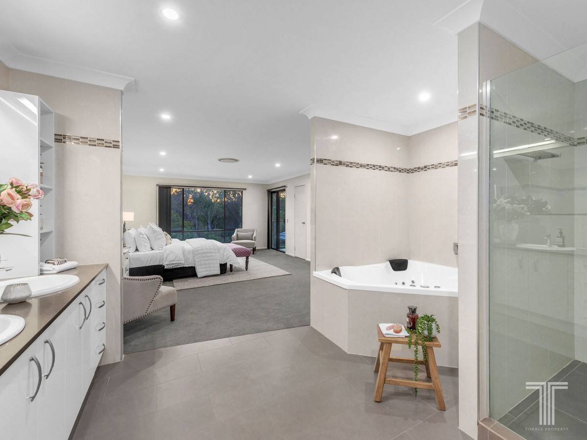 The luxurious master suite has the feeling of a five-star resort at home. This space includes a private balcony, huge walk-in robe/dressing room, large ensuite with dual basin vanity, corner spa bath and large shower.
