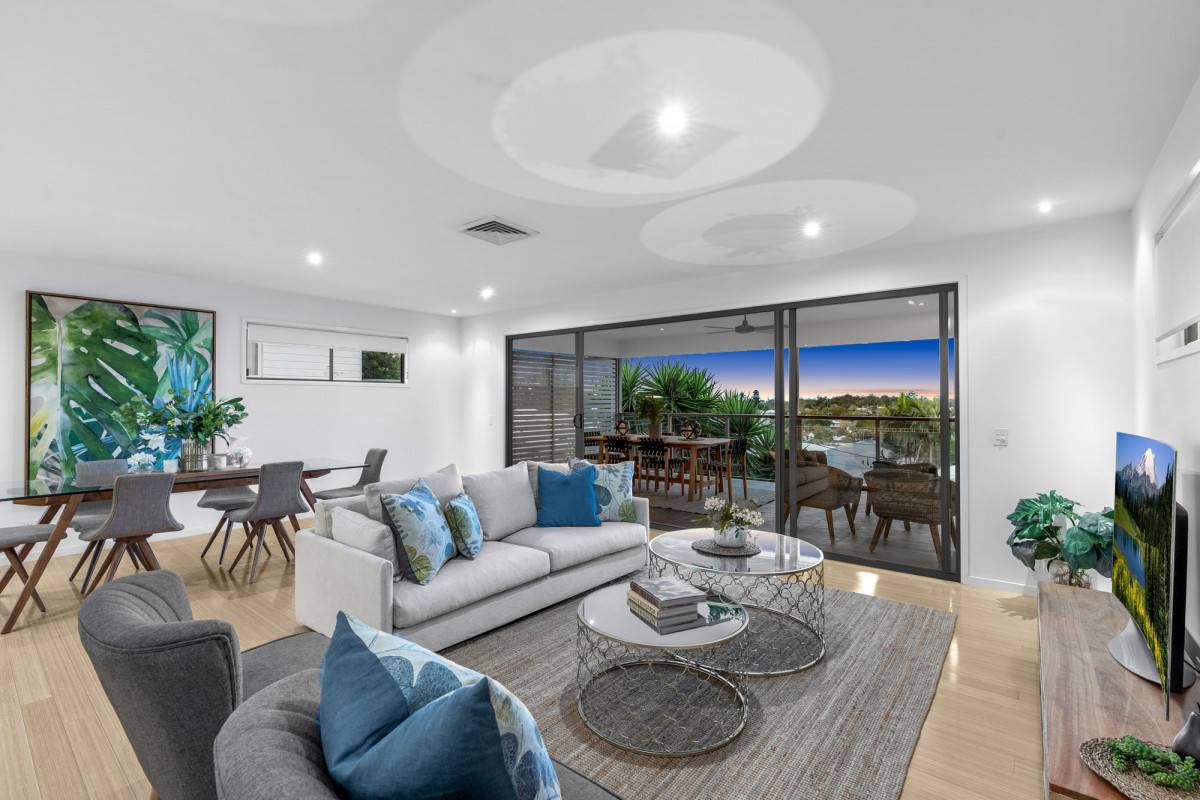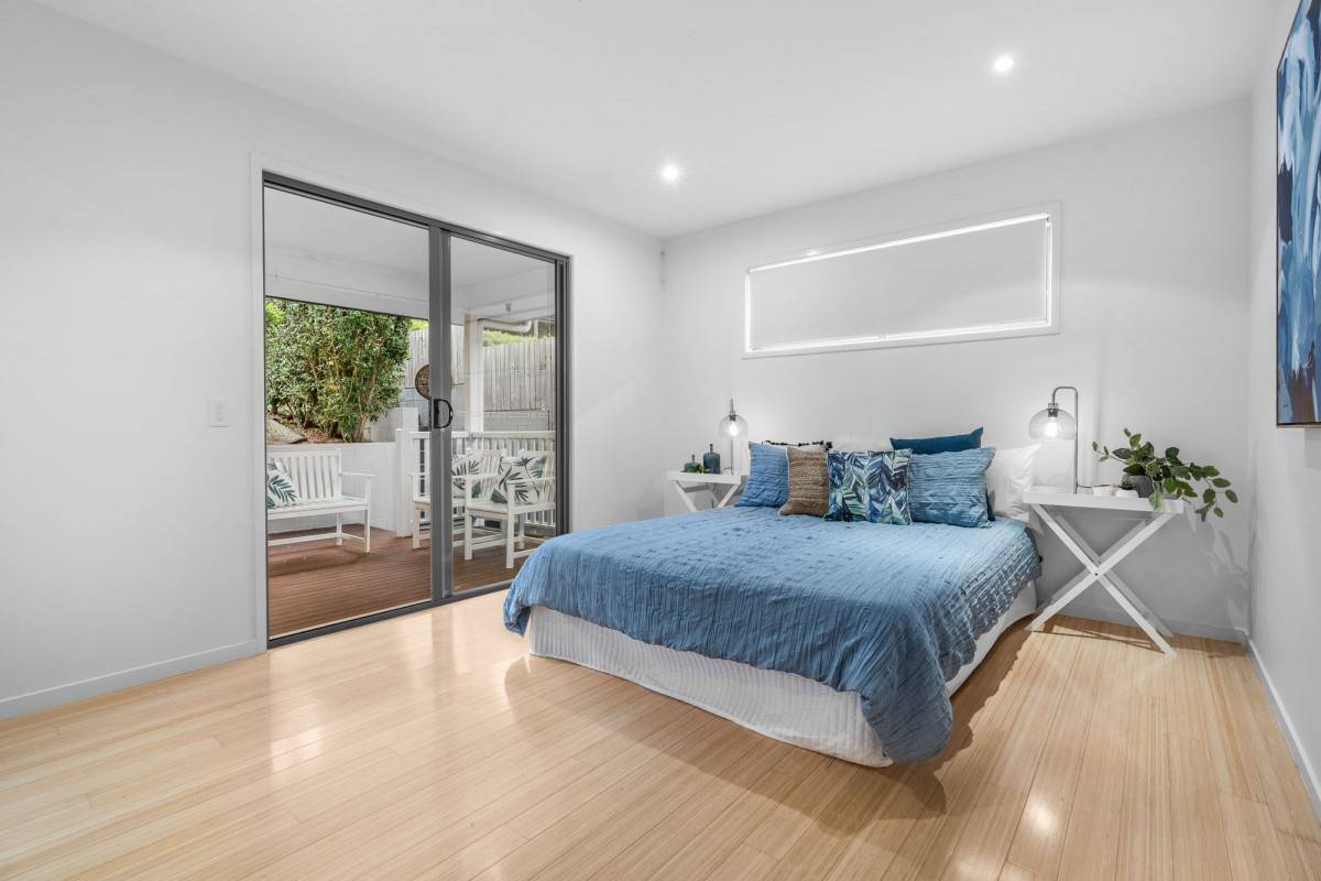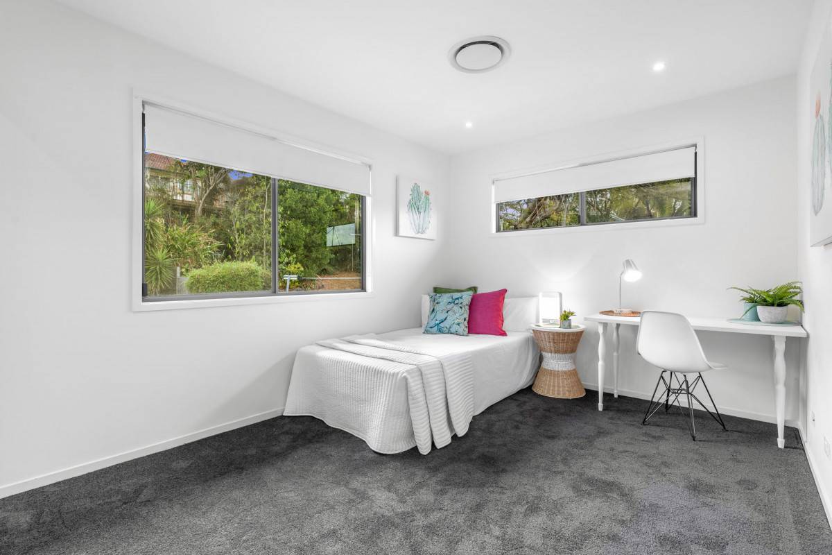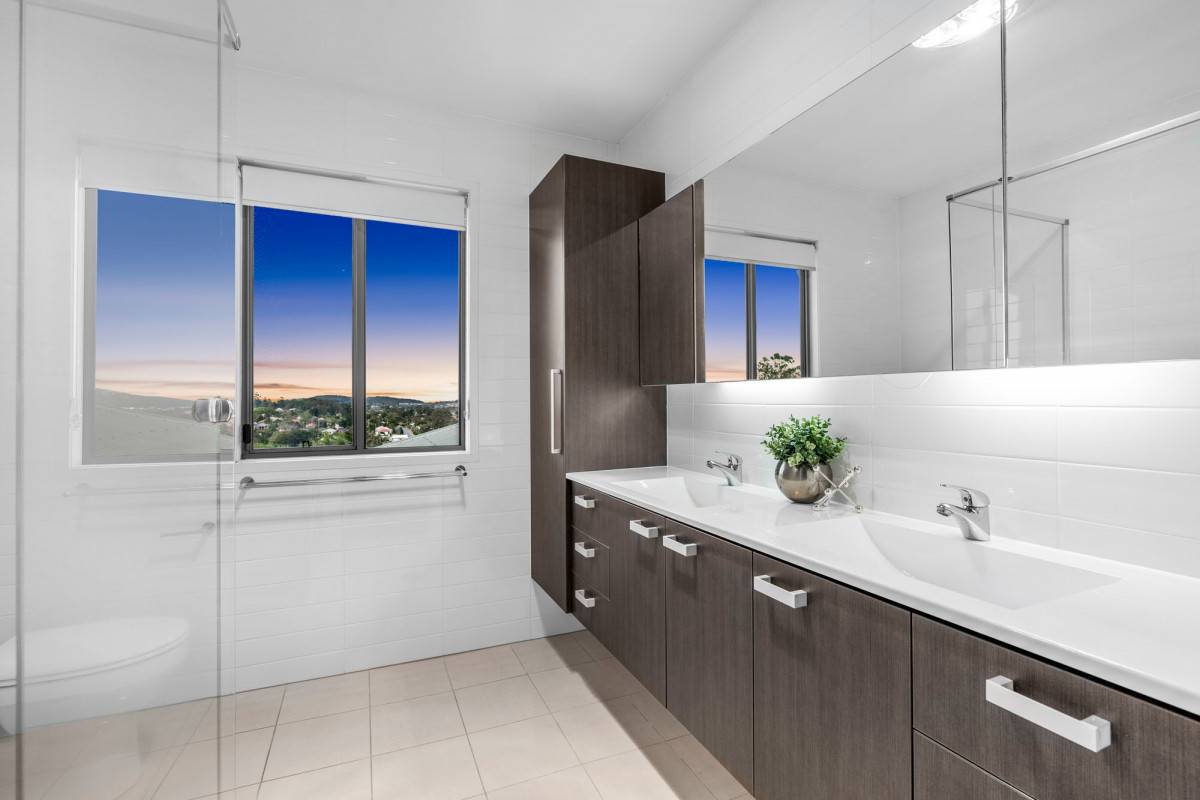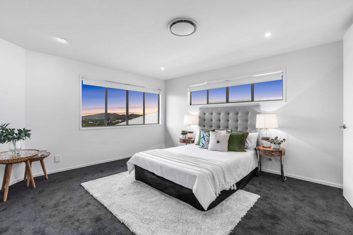 A further three bedrooms and family bathroom are positioned across the upper level and include a stylish master suite with mountain views, walk-in robe and modern ensuite.