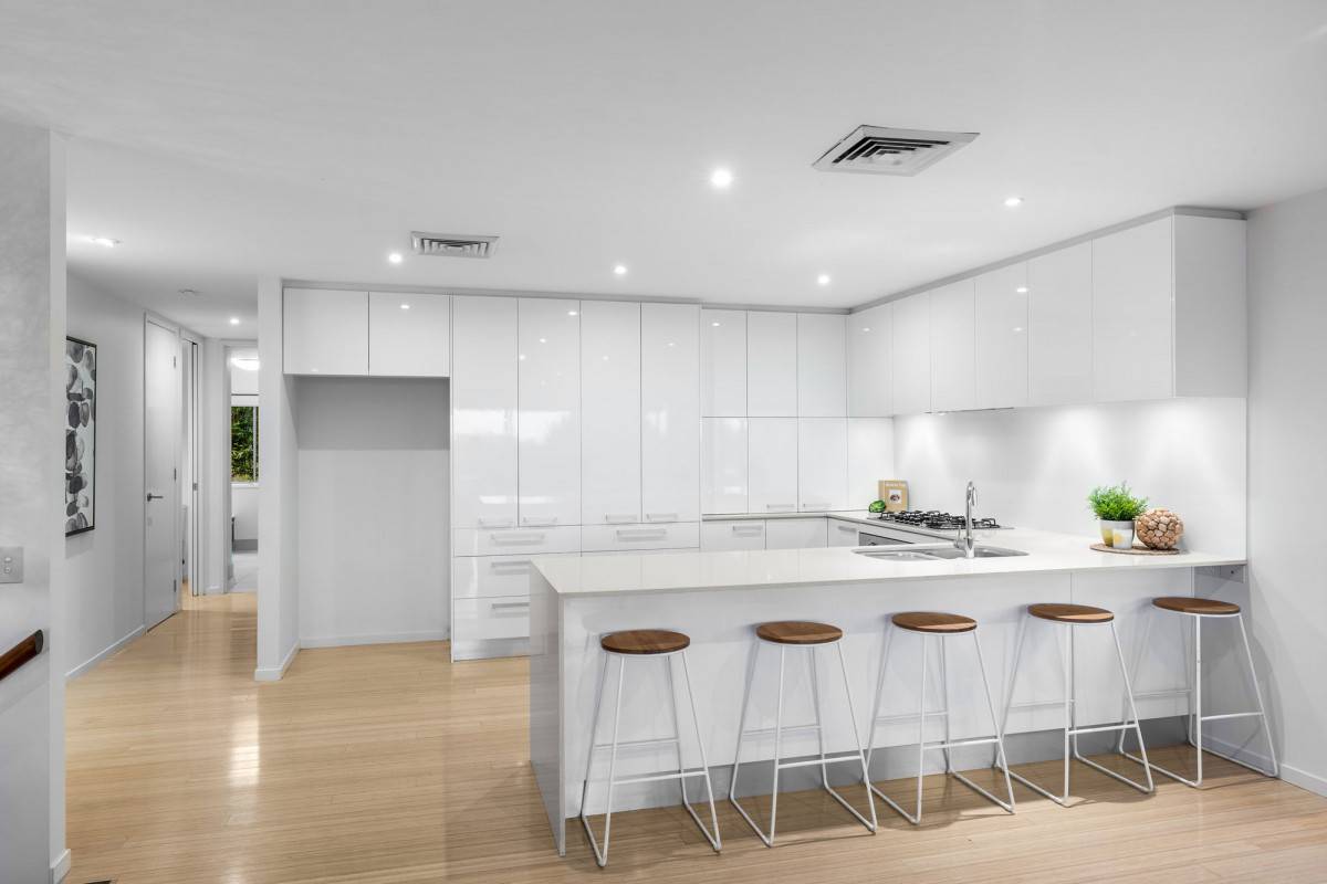 Showcasing stunning Caesarstone benchtops the entertainer's kitchen is centrally positioned. Boasting an array of sleek 2Pac cabinetry, gas cooktop and breakfast bar, it will be a pleasure to prepare meals here.