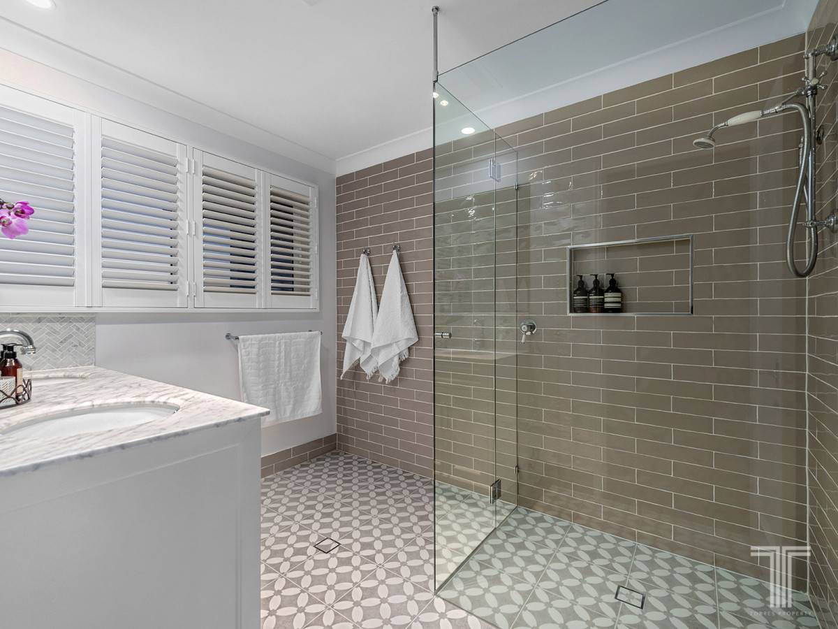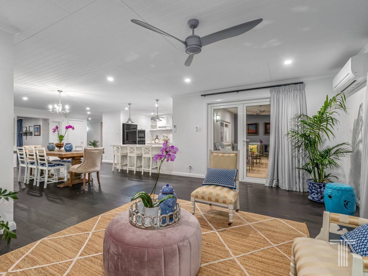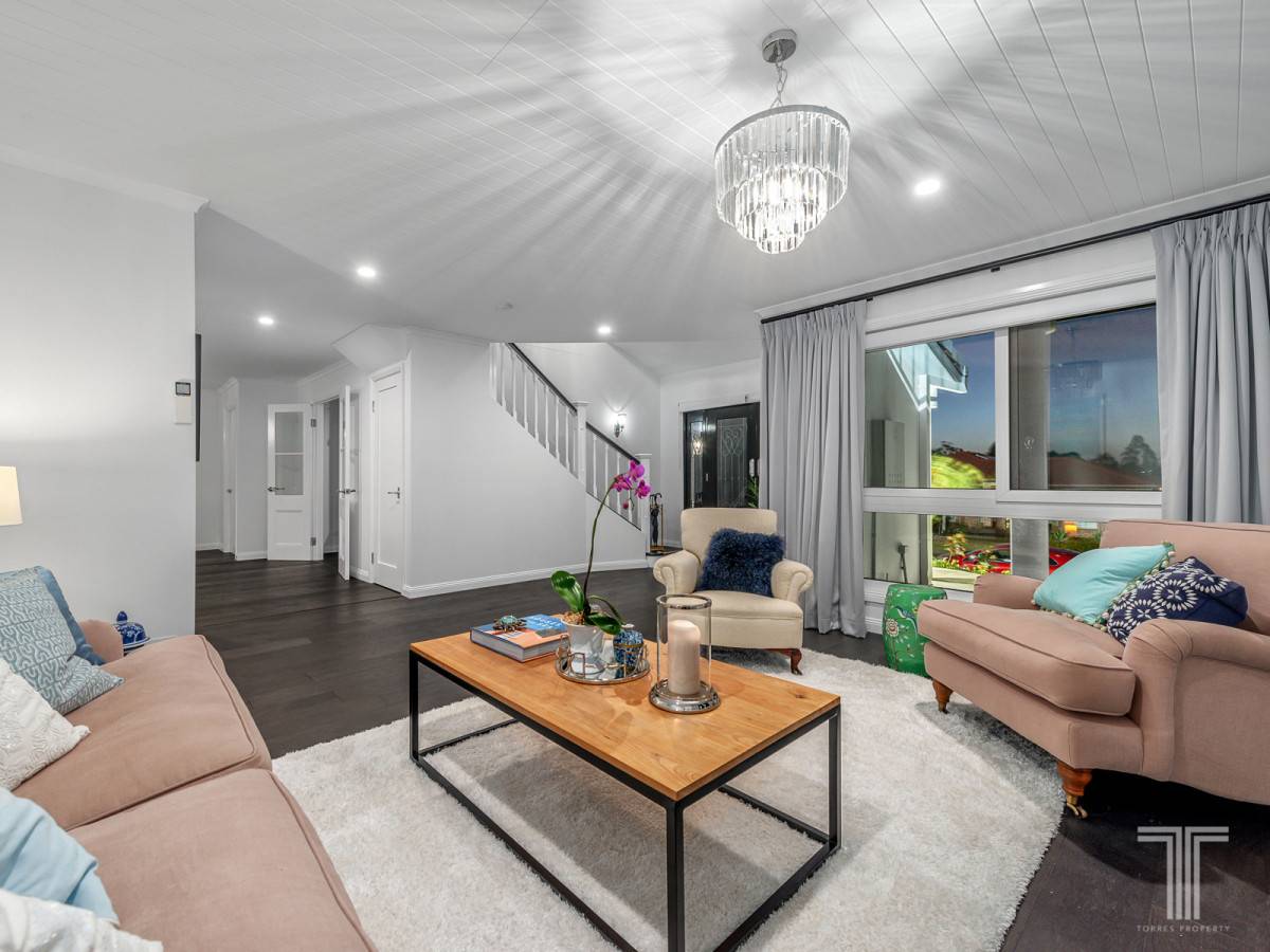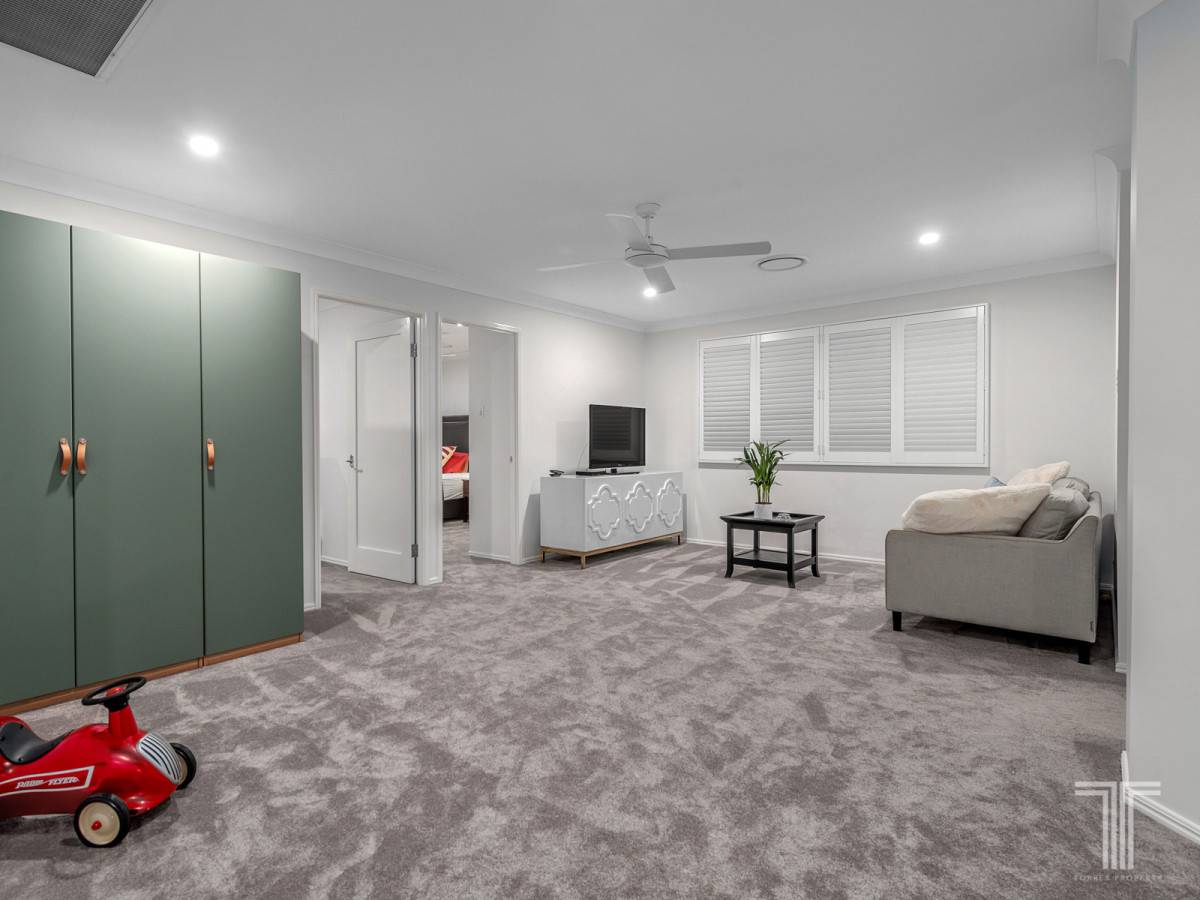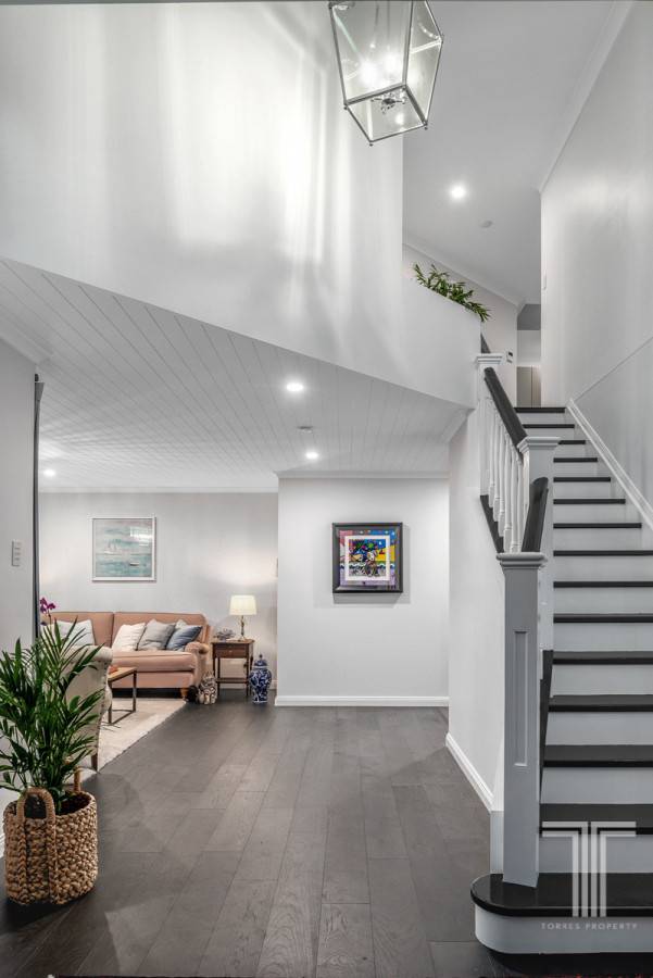 Positioned upstairs, a spacious lounge framed by plantation shutters offers a private space for children and teenagers. Accompanying the main bathroom with designer fittings and four spacious bedrooms, there is plenty of room for the whole family.
