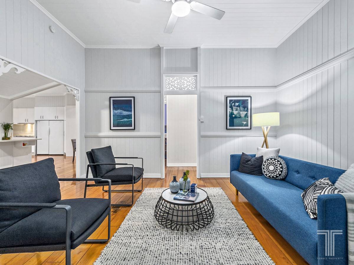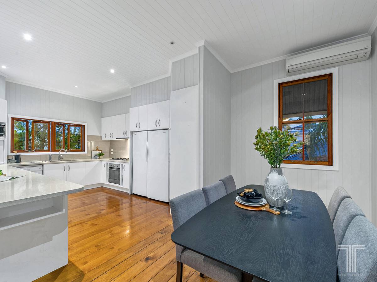 Rich in character and featuring a seamless connection between indoors and out, the upper level reveals a formal lounge room and open plan living and dining area. Adorned with polished pine flooring, period fretwork, high ceilings and VJ walls, these living spaces adjoin the modern kitchen with wraparound stone benchtops, skylight, European appliances and zip tap.