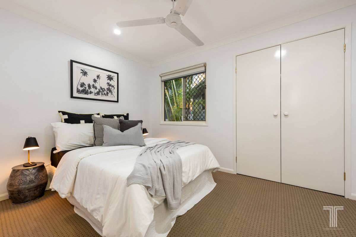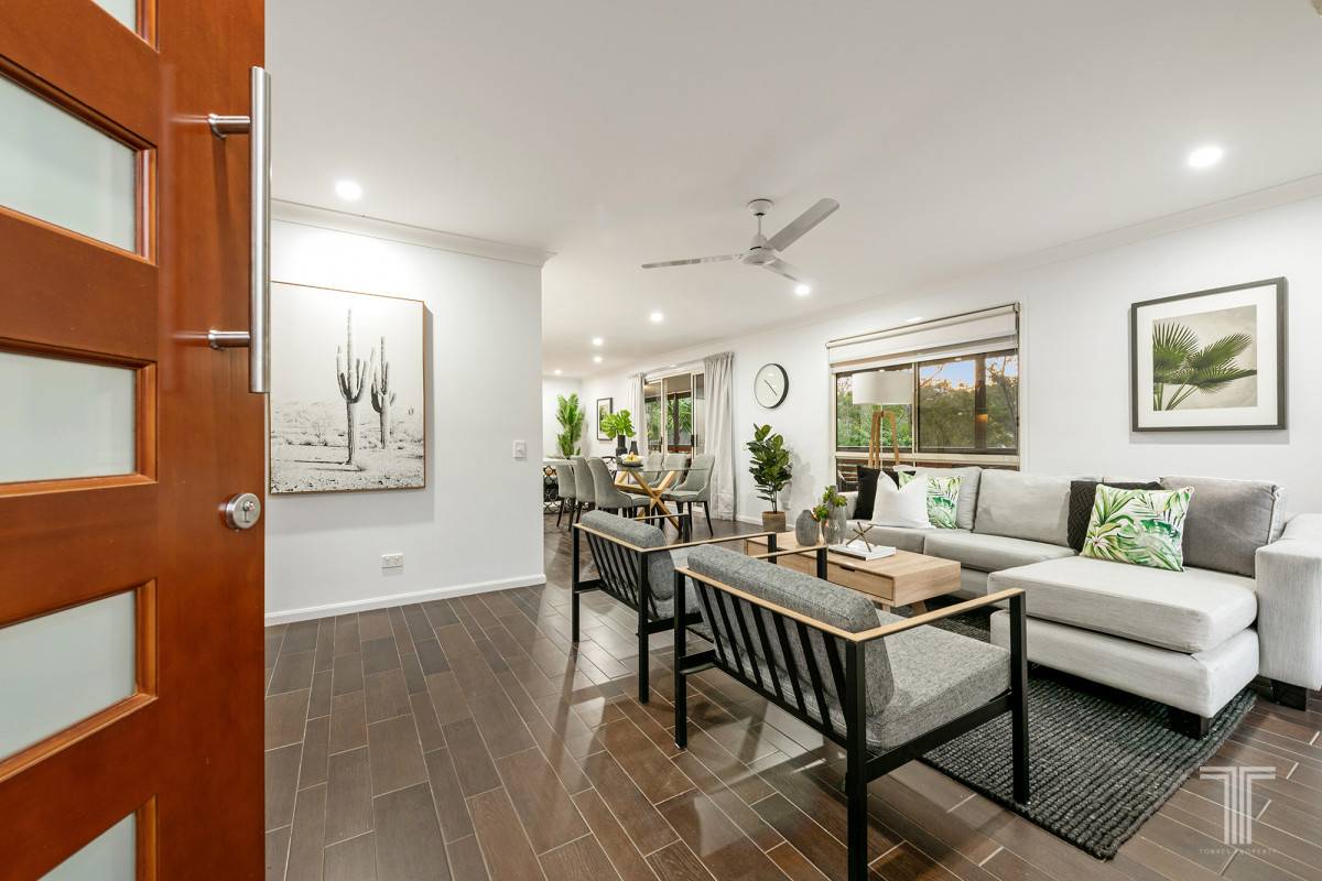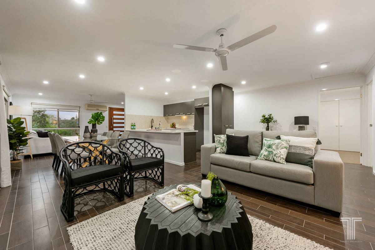 Beyond its exceptionally private frontage, the interiors are adorned with rich flooring and neutral tones, awaiting a splash of personalisation with your favourite works of art. The open plan living and dining rooms provide the perfect place for the family to come together, all with the comfort of ceiling fans and air-conditioning.