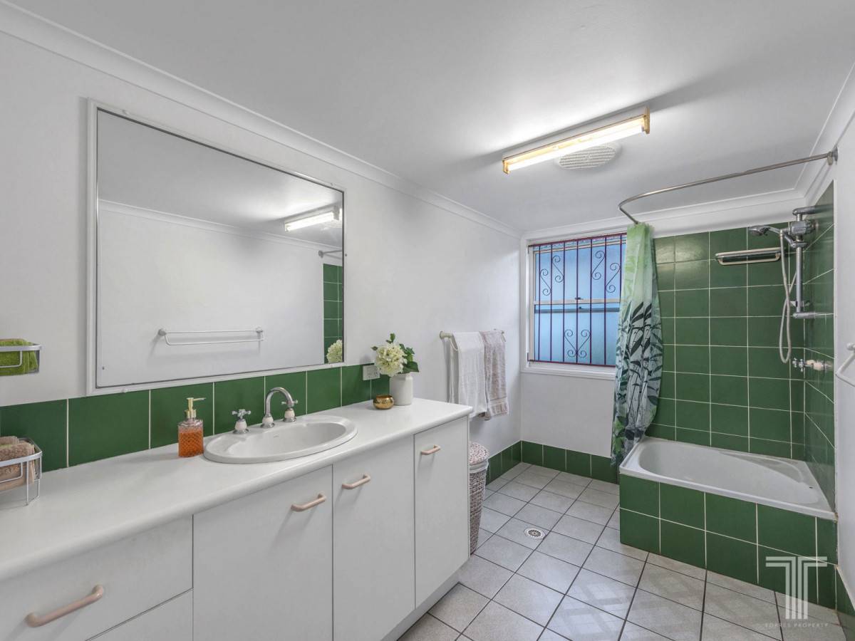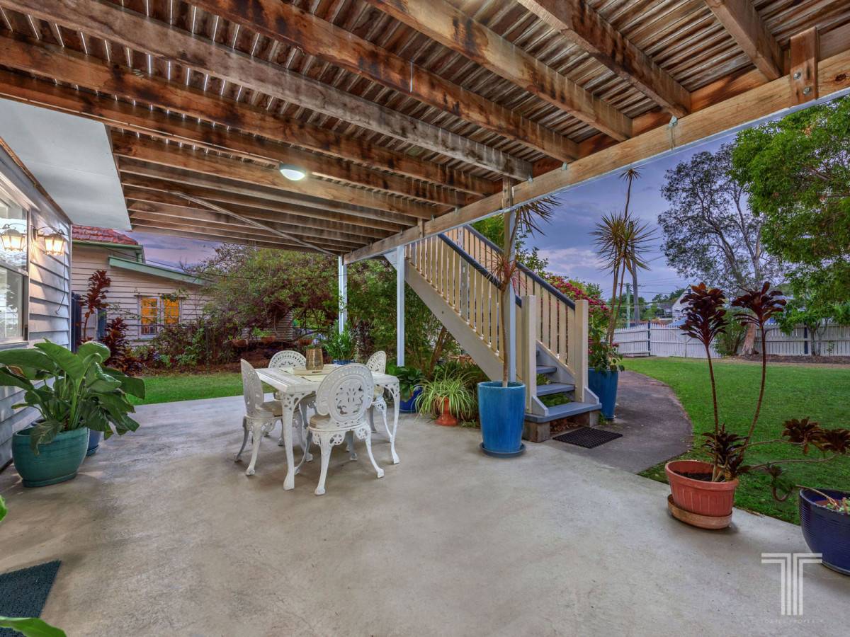 Enjoy Brisbanes fantastic weather on the covered deck with leafy suburban outlooks and external stairs leading straight down to the backyard.