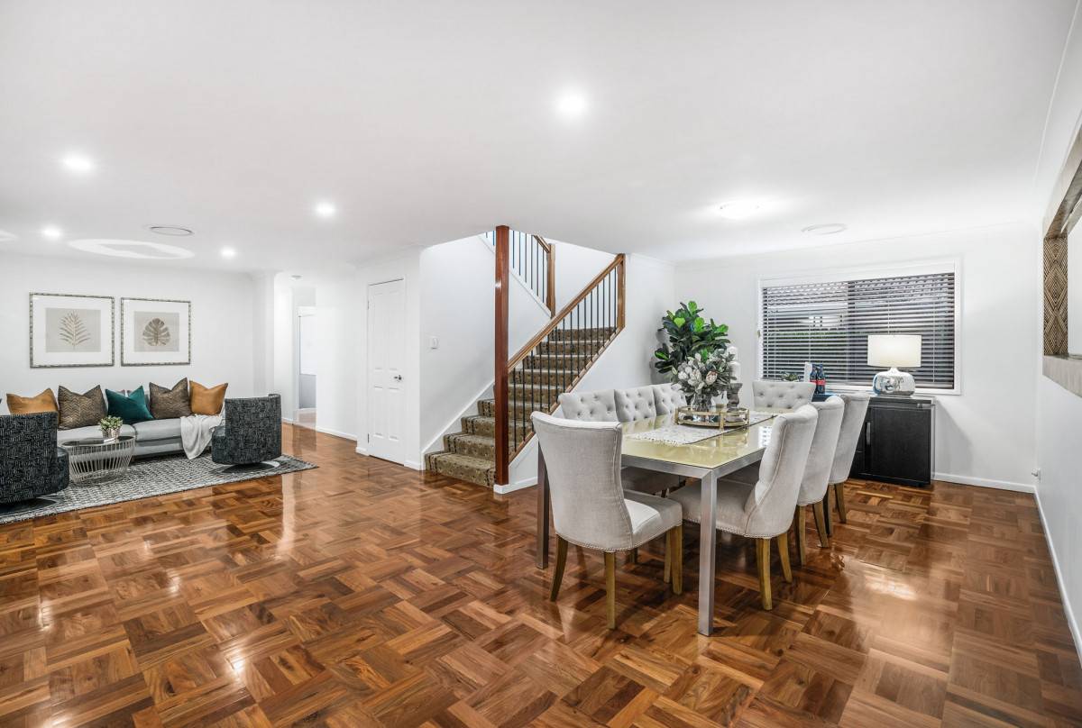 Spanning two spacious levels, enter into the ground floor revealing high ceilings, stylish downlights and stunning parquetry flooring. Generously sized and hosting two distinct lounge and dining areas, there is plenty of room for the whole family.