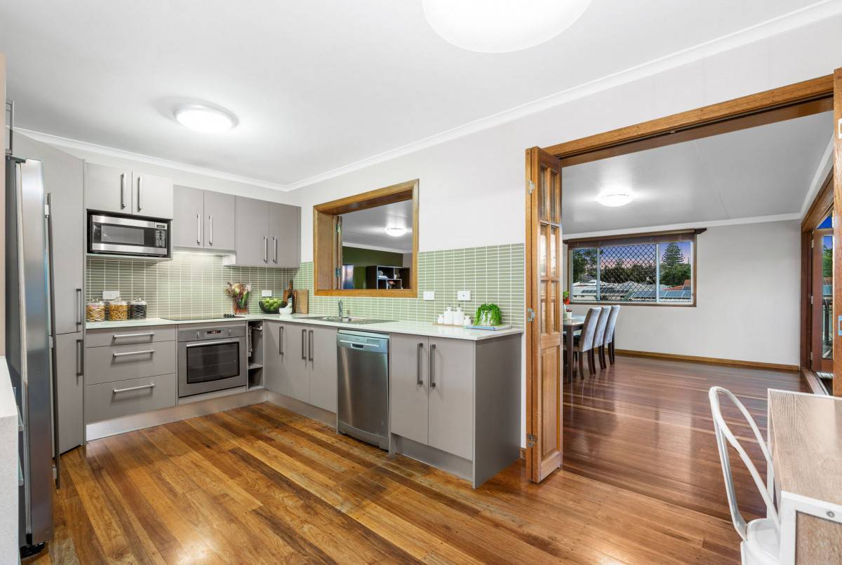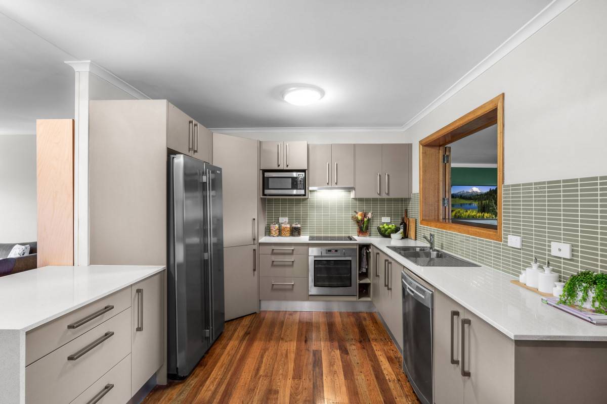 Stylishly appointed, the updated kitchen is adorned with stone benchtops, ample cabinetry, stainless steel appliances, breakfast bar and servery window to the dining area.