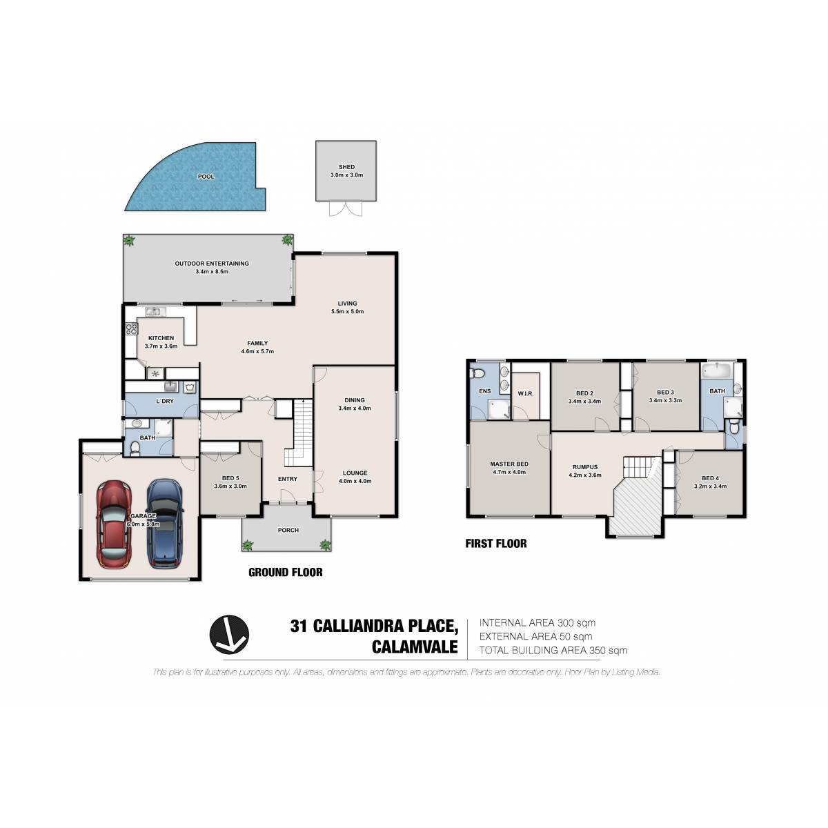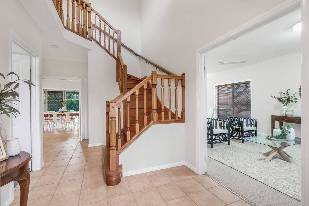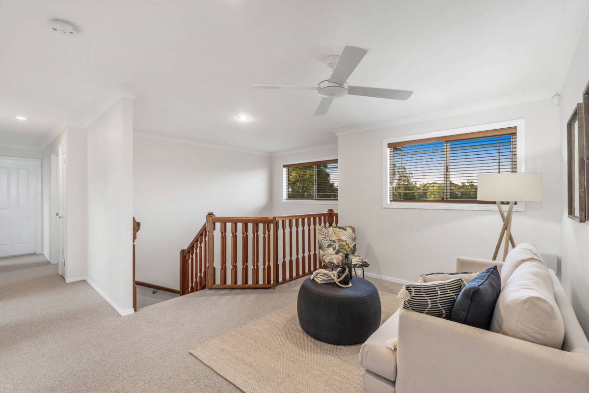 Positioned upstairs, a large rumpus room, four generous bedrooms and main bathroom present plenty of space. Located in a private wing, the air-conditioned master suite will impress with its walk-in robe and ensuite. Ideal for grandparents and guests, a fifth bedroom and third bathroom are located downstairs.