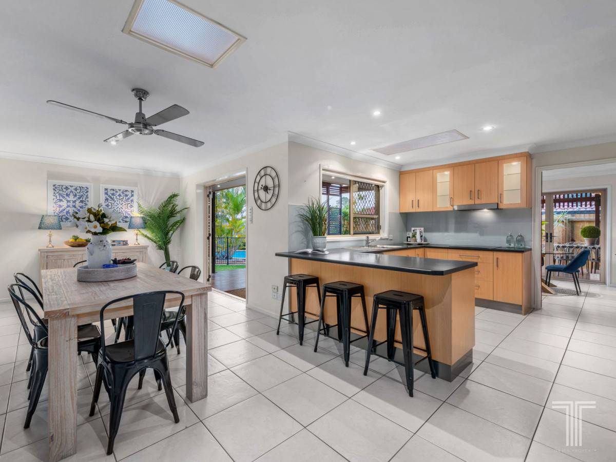 Completing the home, four generous bedrooms all featuring ceiling fans. Thoughtfully designed, the master suite harnesses outlooks over the pool and boasts new air-conditioning, modern ensuite and walk-in robe. Serviced by the stylish main bathroom, the additional bedrooms all include built-in robes.
