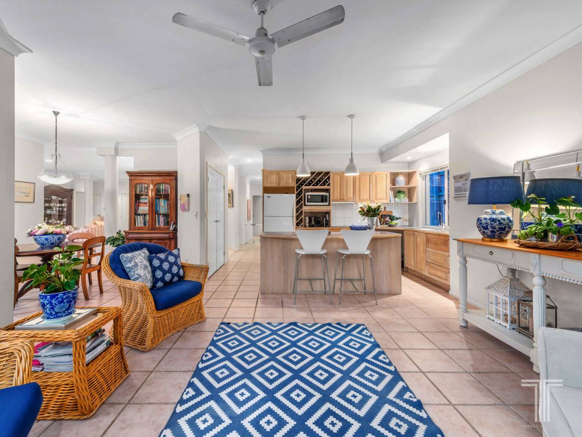Open in design and perfect for everyday living, the light filled casual family and meals area adjoins the functional kitchen featuring a central island bench and ample timber cabinetry.