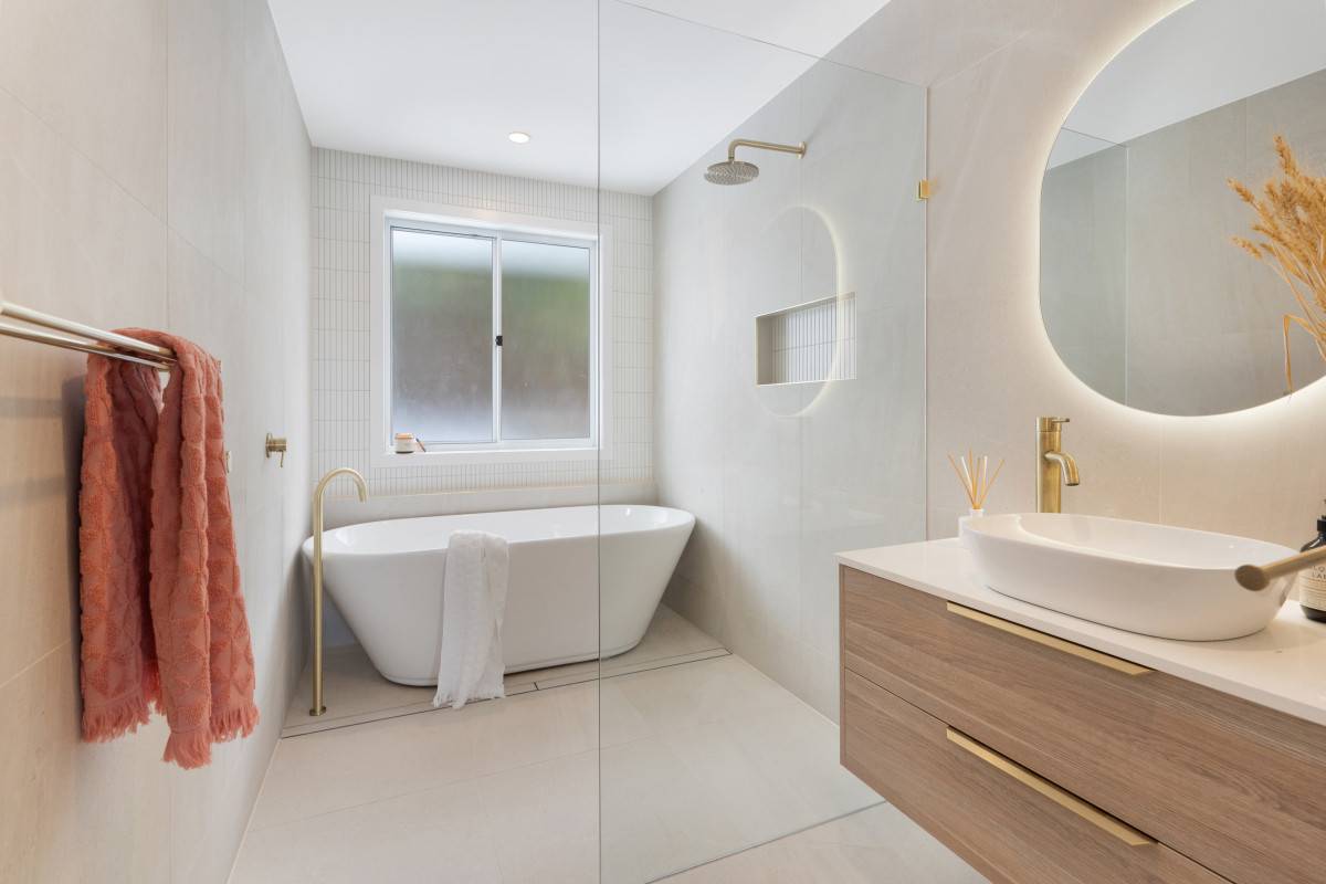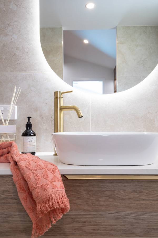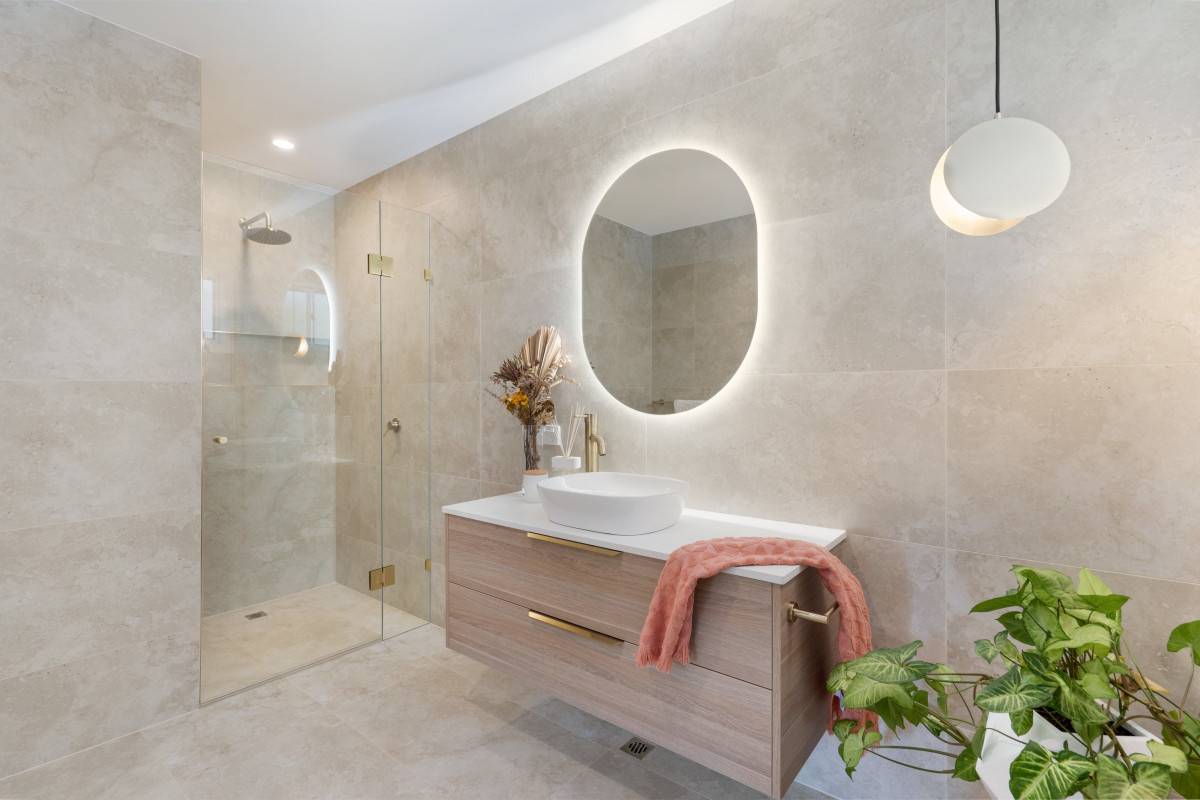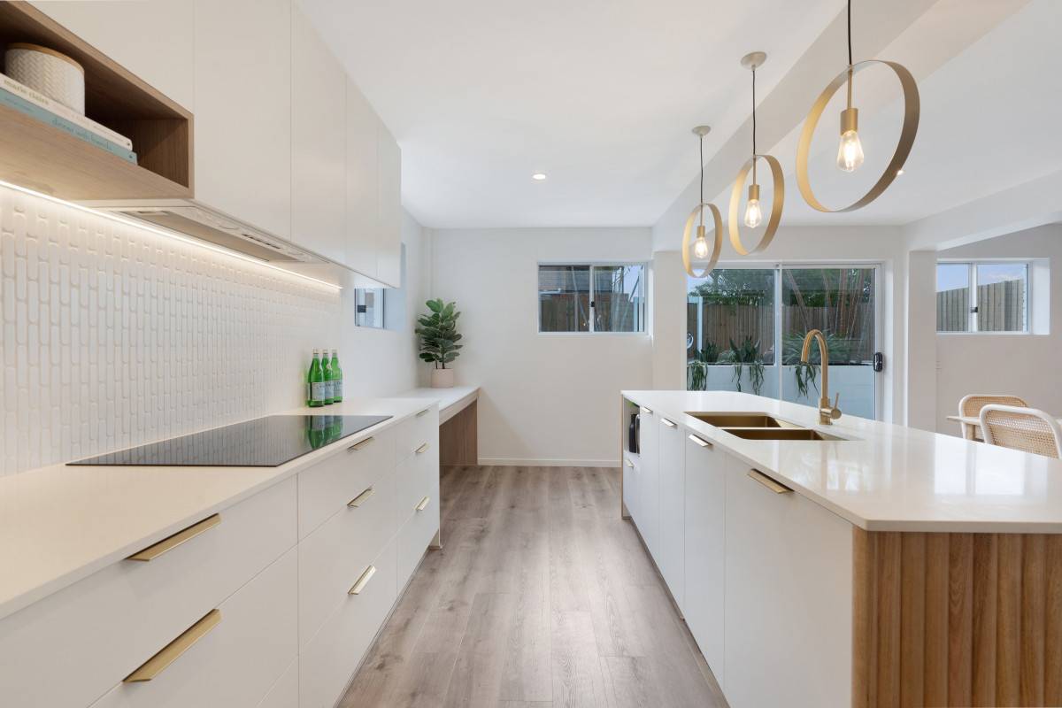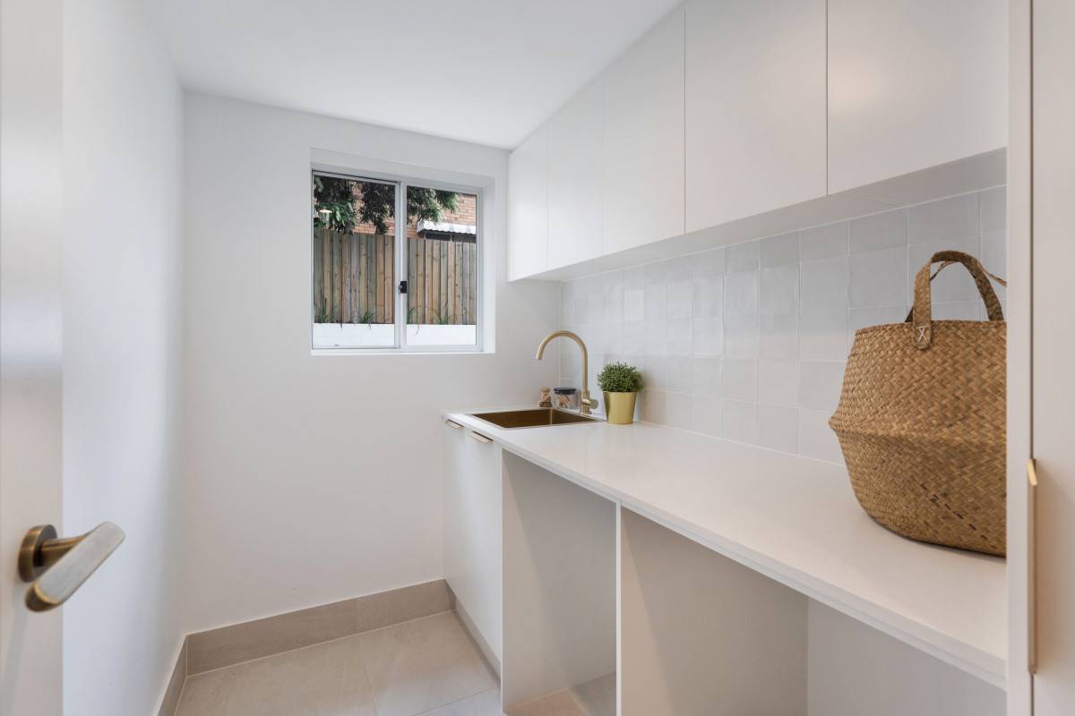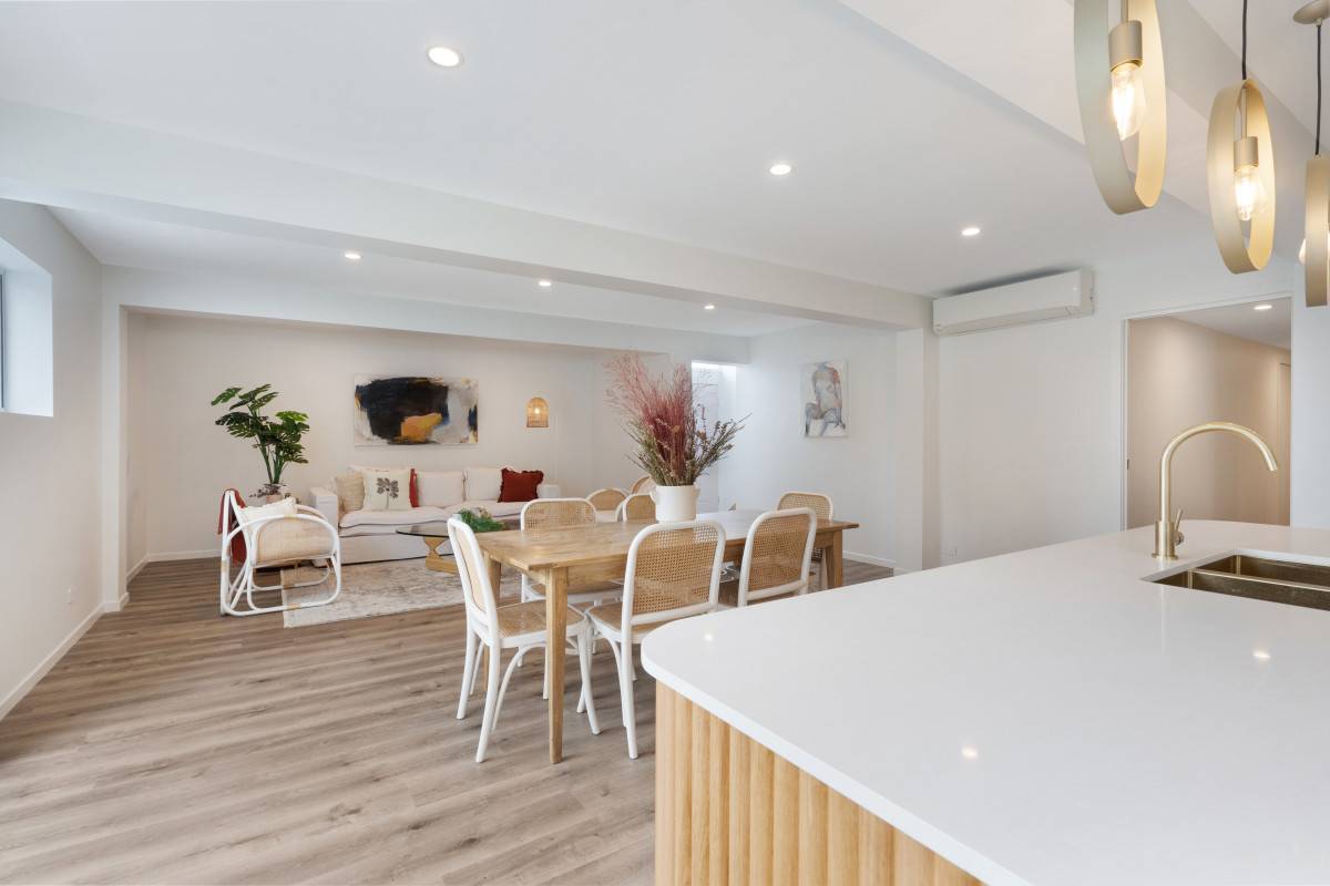 Open in design and instantly inviting, the lounge and dining area exudes effortless sophistication. Extending out via sliding glass doors and adjoining the designer kitchen with brushed gold fittings, feature pendant lighting, integrated dishwasher, induction cooktop and dual ovens, no detail has been overlooked.