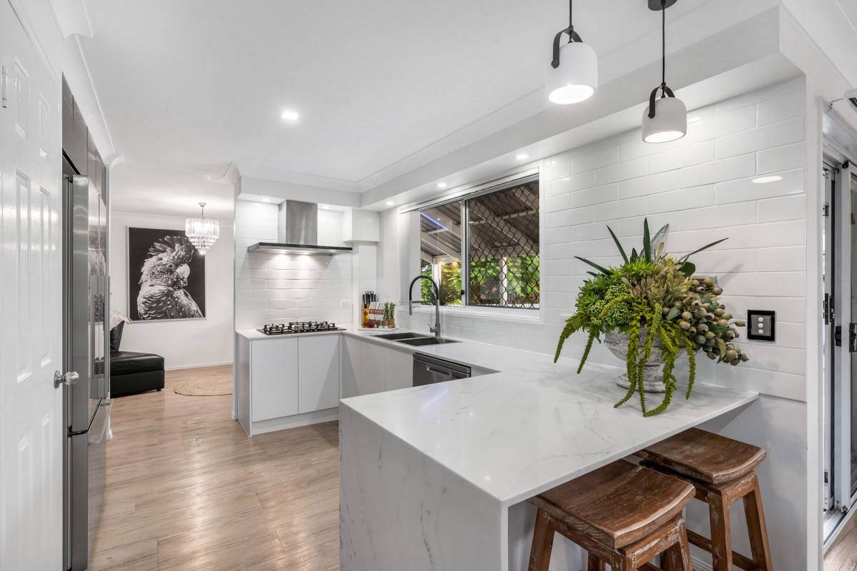 Flawlessly renovated and open in design the gourmet kitchen is a true standout feature. Replicated from the TV show The Block this designer kitchen boasts a stunning layout comprised of Caesarstone benchtops, stainless steel appliances, double oven, 900mm gas cooktop and idyllic storage space.