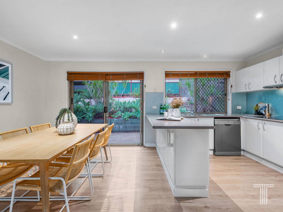 Open in design and well-appointed the functional kitchen adjoins the dining area. Featuring wraparound benchtops and stainless steel appliances this culinary setting opens via glass doors to the rear yard and above-ground pool to keep you cool all summer long.