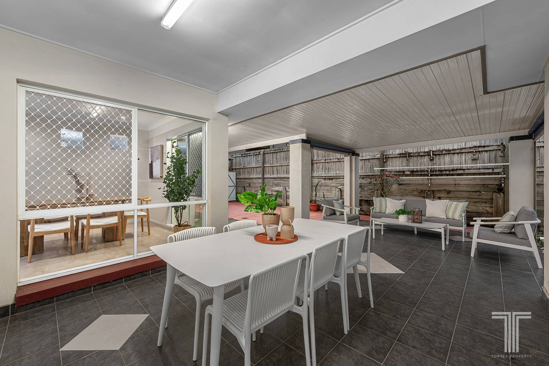 The covered outdoor area is hidden behind high fences for private entertaining, and the open alfresco space is ideal for extended gatherings, kids' scooters, basketball or extra parking.
