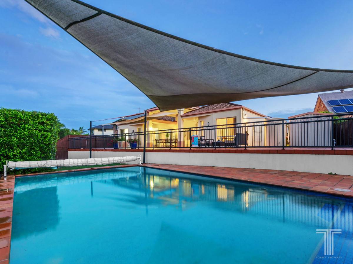 An entertainer's dream the alfresco terrace is destined to impress. Sweeping around the rear of the home and boasting a partial shade sail to allow you to enjoy the outdoors in the sunshine or shade this superb setting is ideal for parties large and small and overlooks the sparkling in-ground pool.