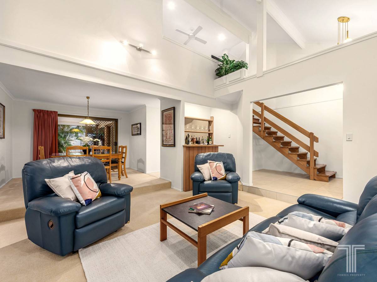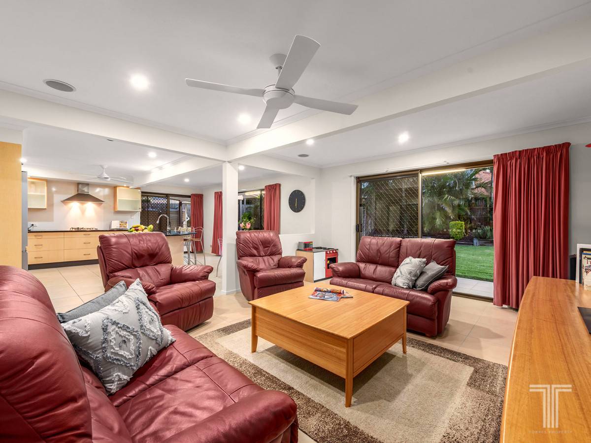 Situated atop a 907sqm site in a peaceful Carindale street, this exceptionally private home boasts a north-eastern aspect to harness natural light and cooling breezes.