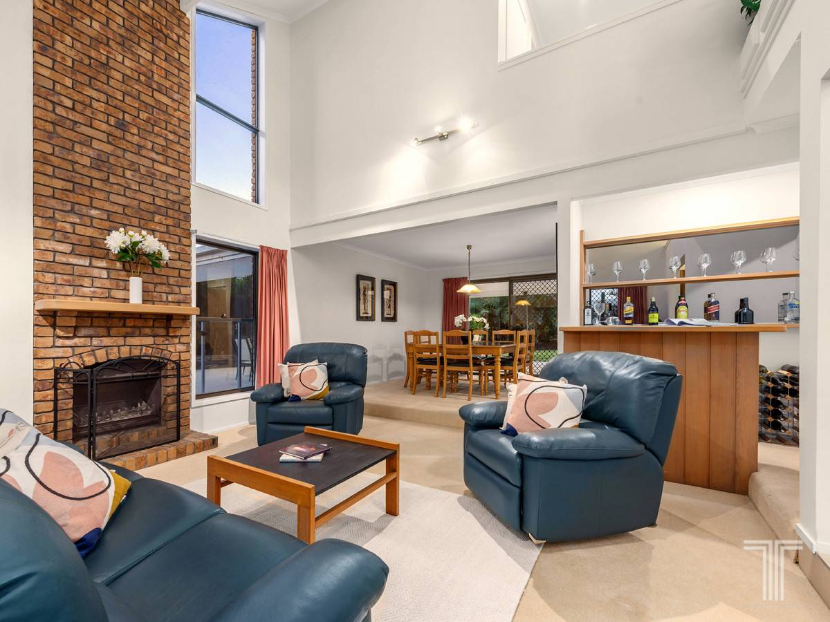 Extending off the entryway, the sunken lounge will instantly impress. Creating an incredible sense of space with a soaring void, this light-filled living area features a built-in bar, wood-burning fireplace and adjoining dining room.