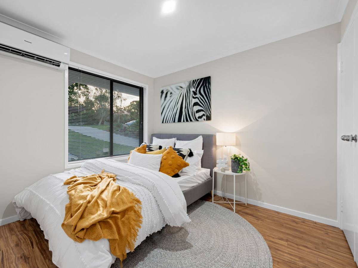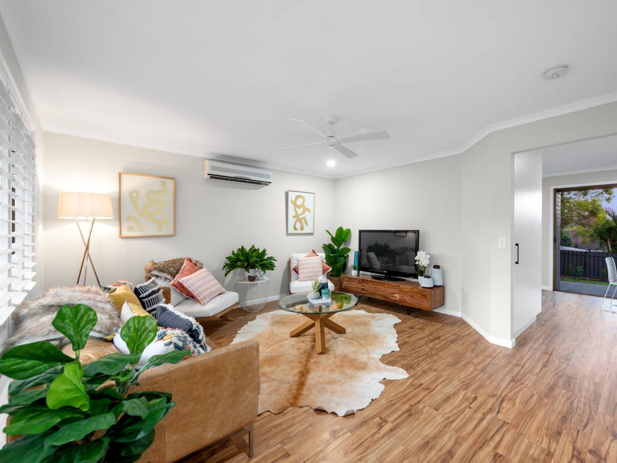 Hosting three bedrooms, including two with built-in robes and air-conditioning, the home is serviced by a modern bathroom featuring new black fixtures, and a separate laundry.