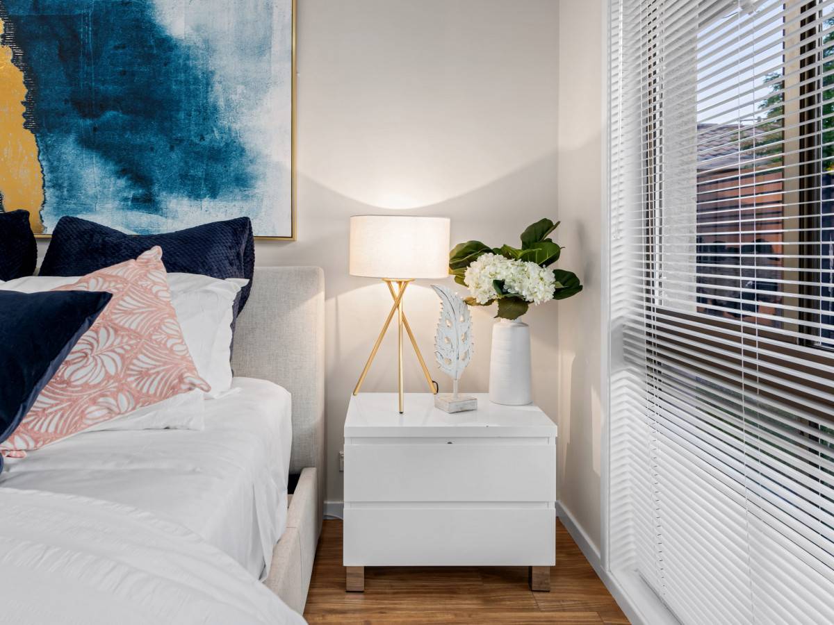 New white LED downlights and 25mm aluminium horizontal white blinds throughout