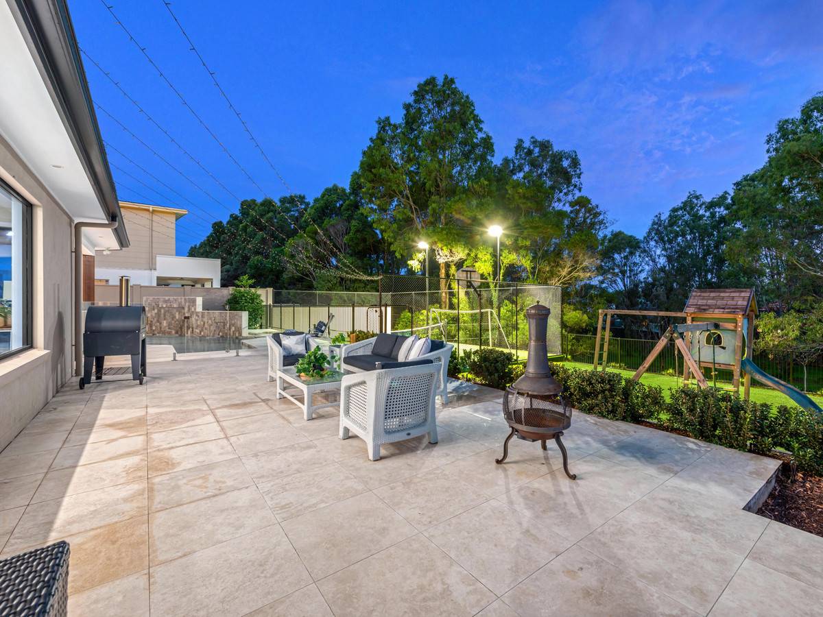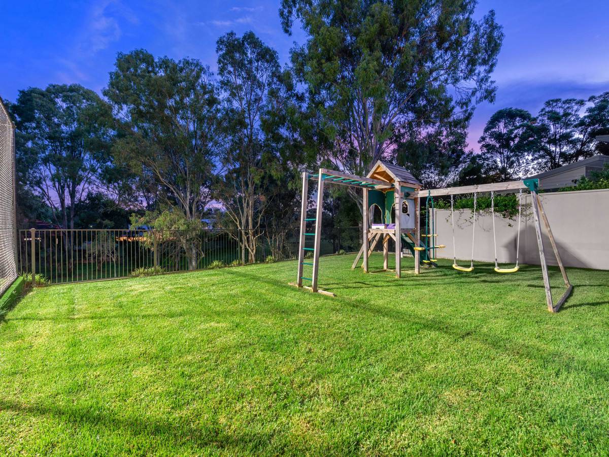 Accessible via large glass doors, a covered al fresco area is steps from the dining space and extends the homes entertainment options outside. Sure to be the envy of family and friends is a sparkling in-ground swimming pool with a spa and water feature, as well as a half tennis and basketball court. There is also a stylish paved outdoor lounge area that looks over a fully-fenced grassed yard with a cubby house and swing set. Fringed by soaring Eucalyptus trees, this incredible al fresco area has plenty of room for pets and children.