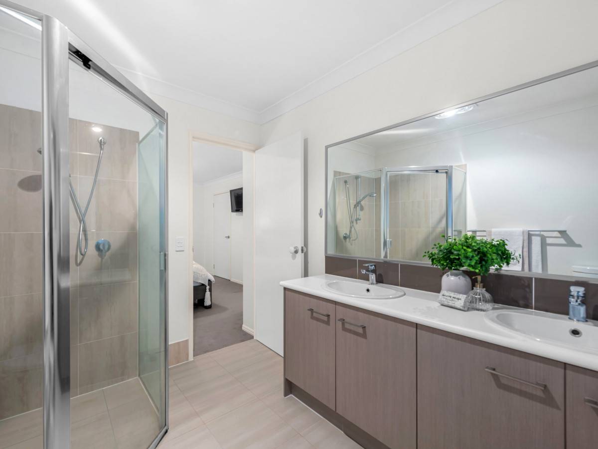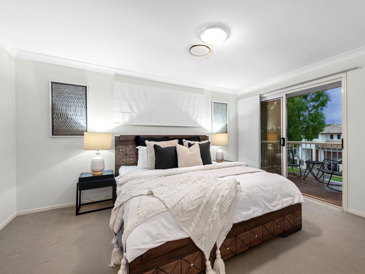 A quiet haven, the master suite reveals a walk-in robe, ensuite with dual vanities and a private balcony. The additional bedrooms all include built-in robes, while a multipurpose room downstairs can serve as a fifth bedroom or home office.