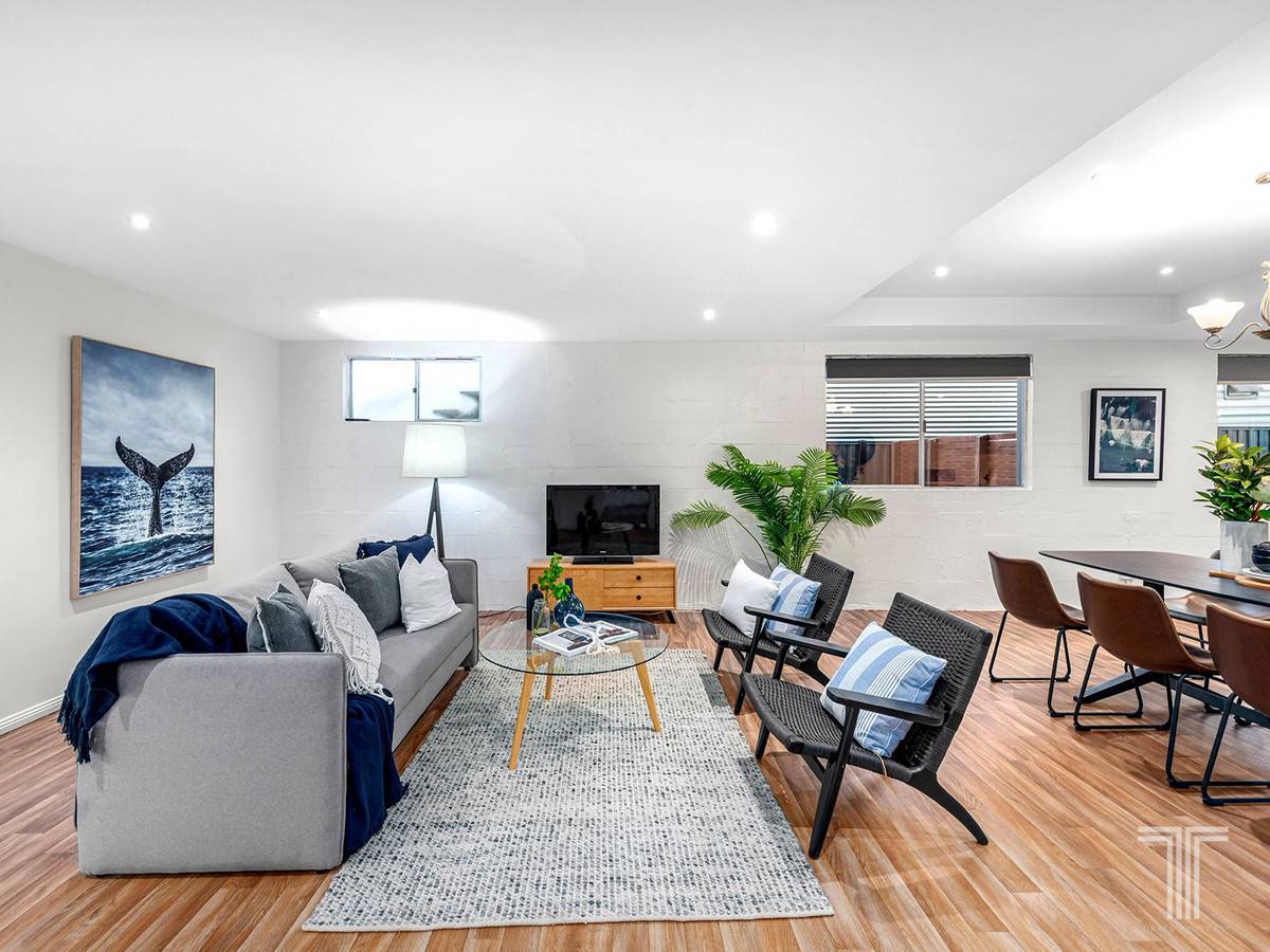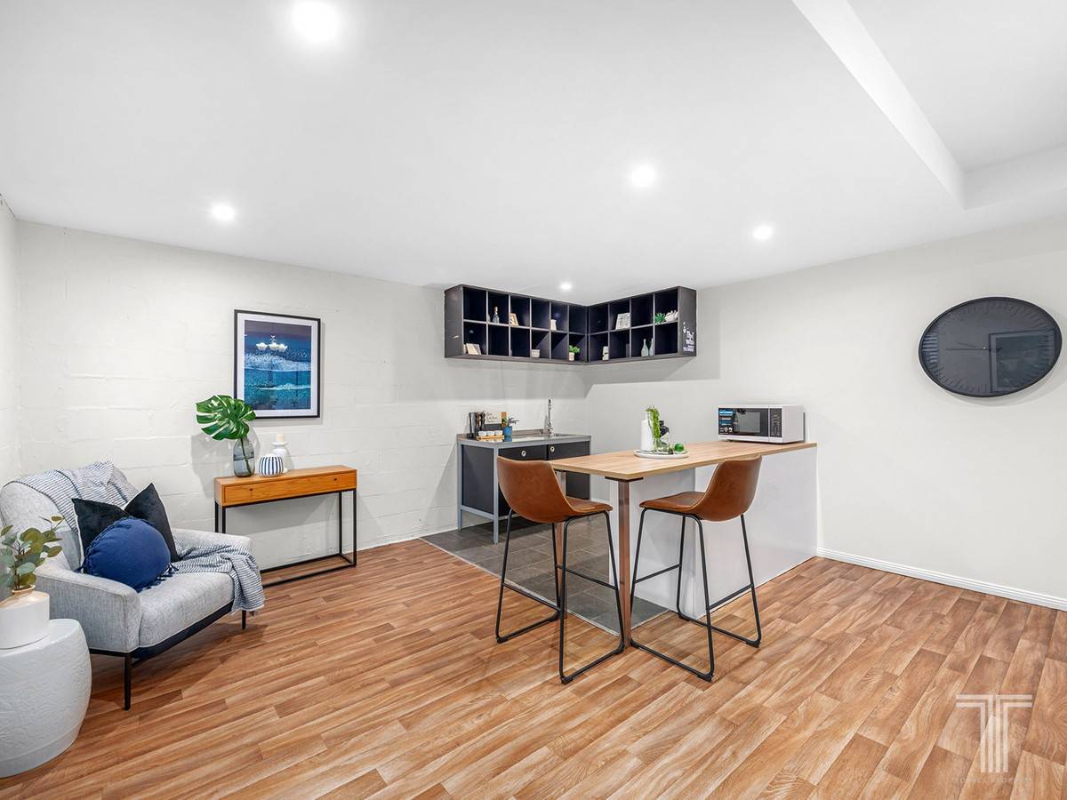 Located downstairs, the ground floor has been transformed with a full renovation. Presenting the perfect layout for a granny flat or teenage retreat, this floor hosts an expansive living area adjoining a stylish kitchenette. Extending out to the rear patio and backyard, this floor also includes a carpeted bedroom with outdoor access and a modern bathroom.