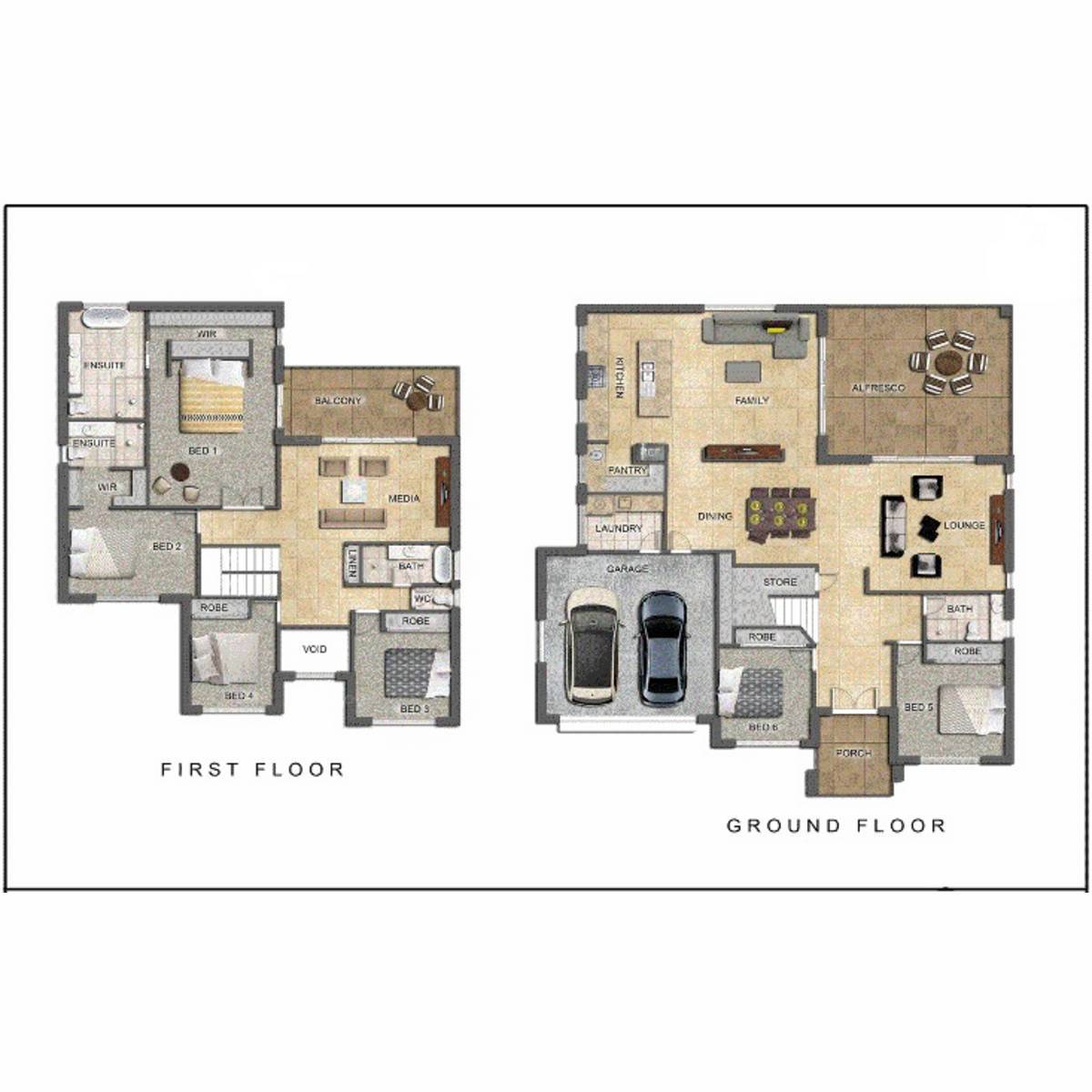 Completing the ground floor, two well-sized and carpeted bedrooms with built-in robes are serviced by a stylish modern bathroom.