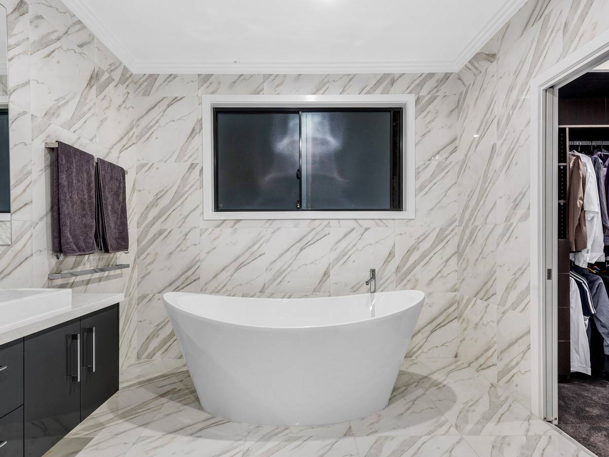 Featuring a further four generous bedrooms on this floor, two lavish master suites include walk-in robes and luxurious ensuites. The additional bedrooms both feature built-in robes and are serviced by a separate bathroom with a freestanding bath.