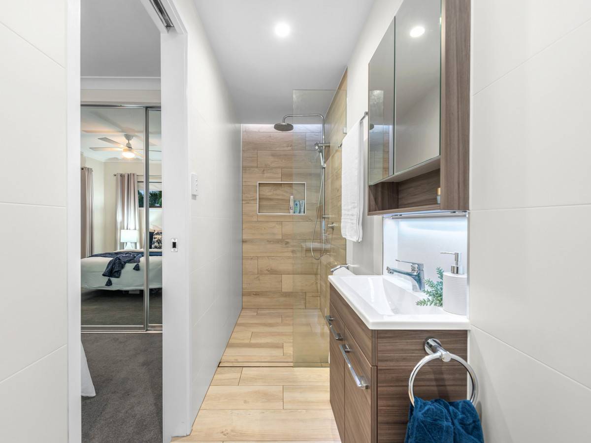 Away from the central living area in a private wing are four generous bedrooms with air-conditioning and built-in robes. Generously sized, the master suite also features a private ensuite, while the stylish family bathroom services the rest of the floor.