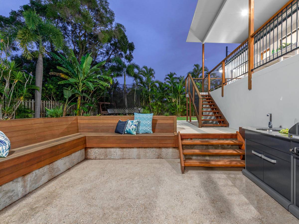 Providing further outdoor space to enjoy, make your way down the rear stairs to a private BBQ area featuring an outdoor kitchen and built-in seating.