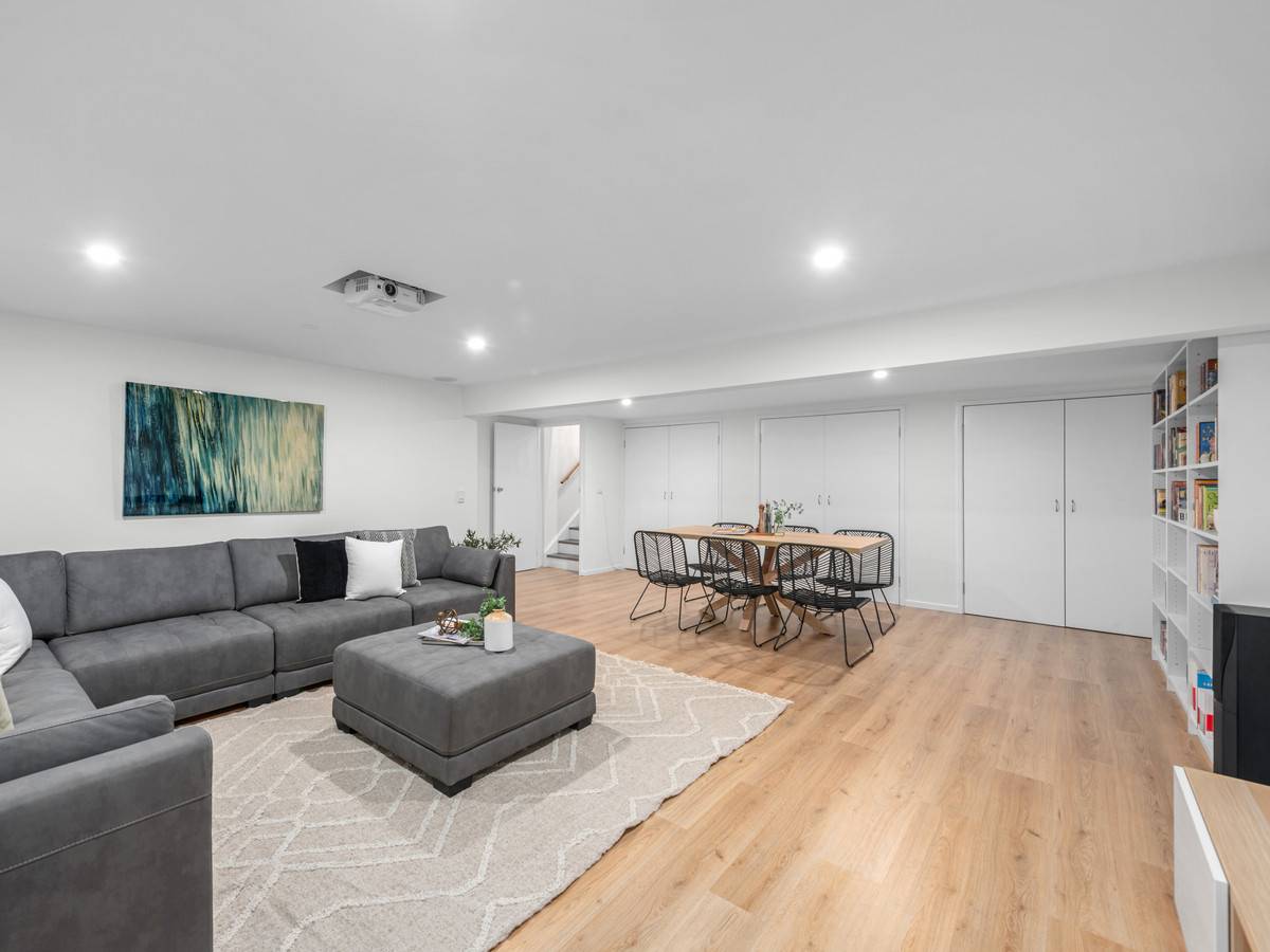 Downstairs, the ground floor reveals further family space with a large multipurpose/media room with ample built-in storage. Adjoining a separate rumpus with kitchenette/laundry, and a third bathroom, this versatile floor is sure to suit a variety of family configurations.