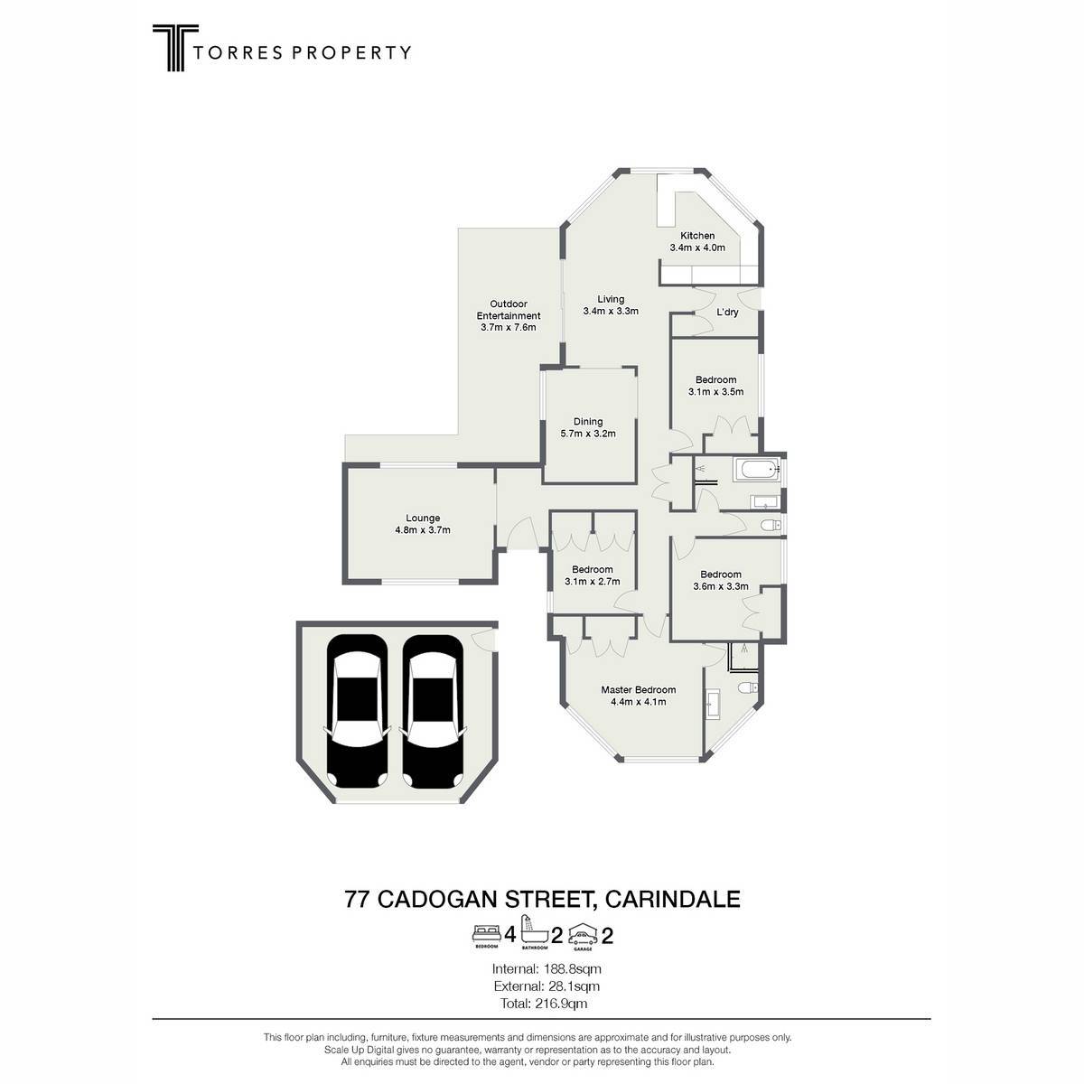Completing the floor plan are four carpeted bedrooms, all featuring ceiling fans and built-in robes. Kept cool with air-conditioning the master bedroom also includes an ensuite, while a large family bathroom with separate toilet services the rest of the home.