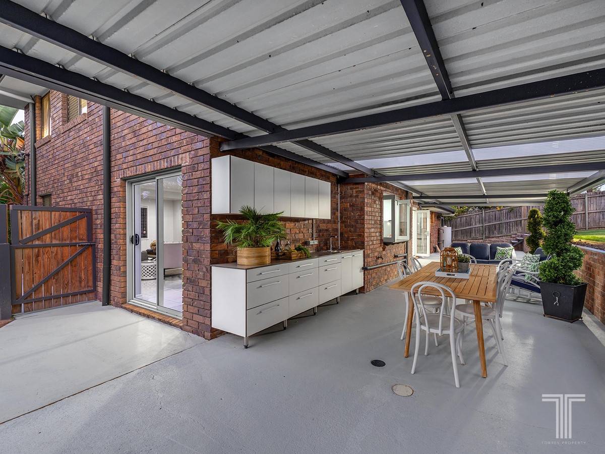 The perfect alfresco setting to enjoy meals and entertain guests, the patio reveals an outdoor kitchen and outlooks over the spacious backyard, which is sure to delight children and pets.