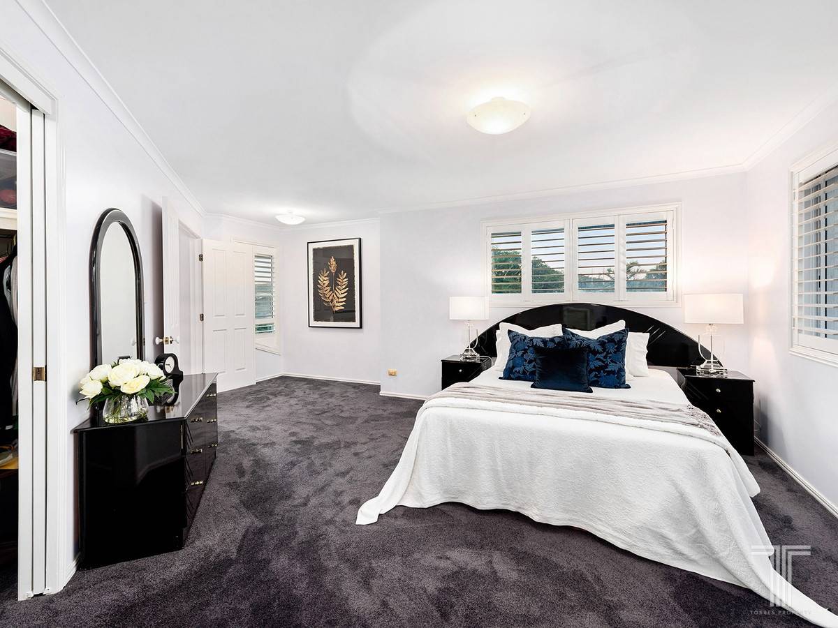 Positioned upstairs, an elevated walkway harnessing sweeping outlooks adjoins four spacious bedrooms adorned with carpeted flooring and air-conditioning. A quiet retreat, the master suite boasts a walk-in robe and private ensuite with a relaxing spa bath, while a central family bathroom services the rest of the floor.