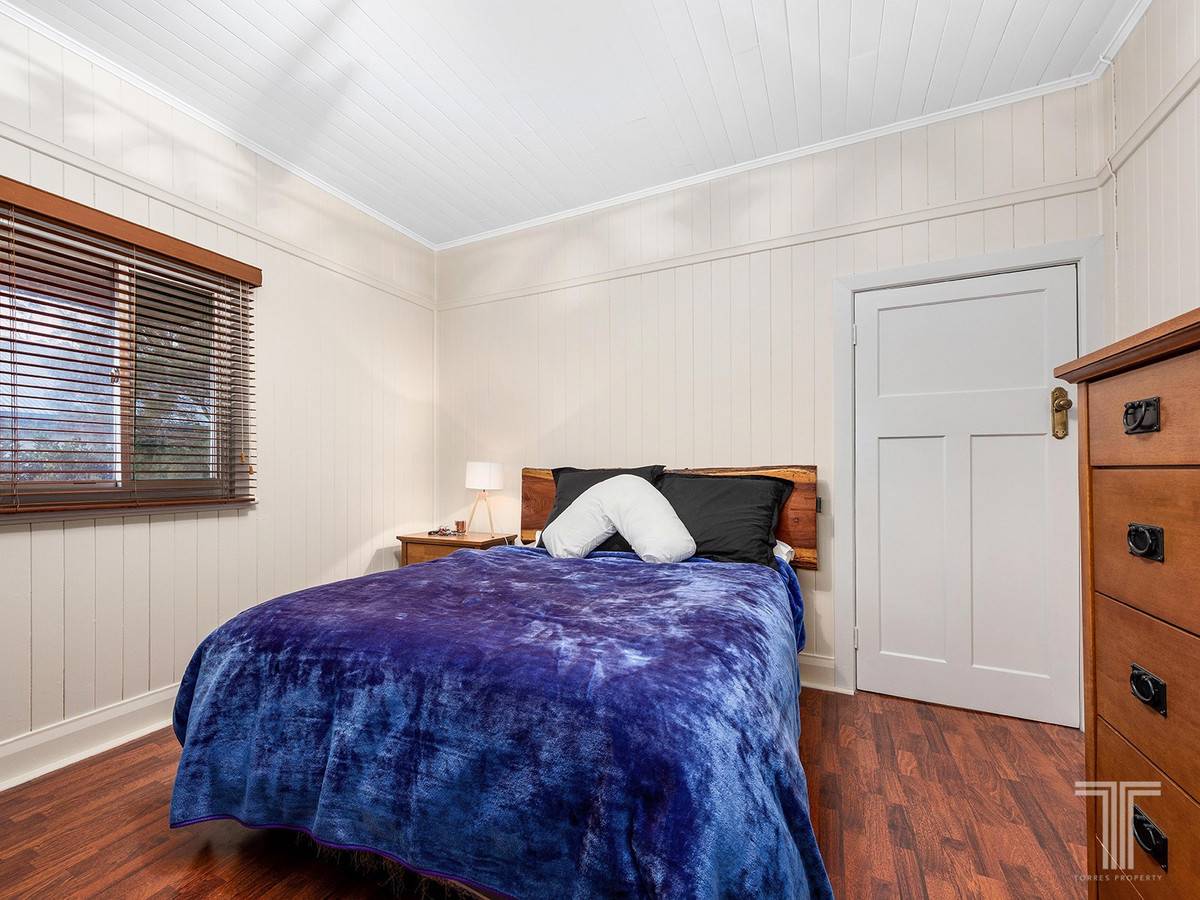 Hosting two bedrooms with high ceilings, VJ walls and casement windows, the home is complete with a central bathroom.
