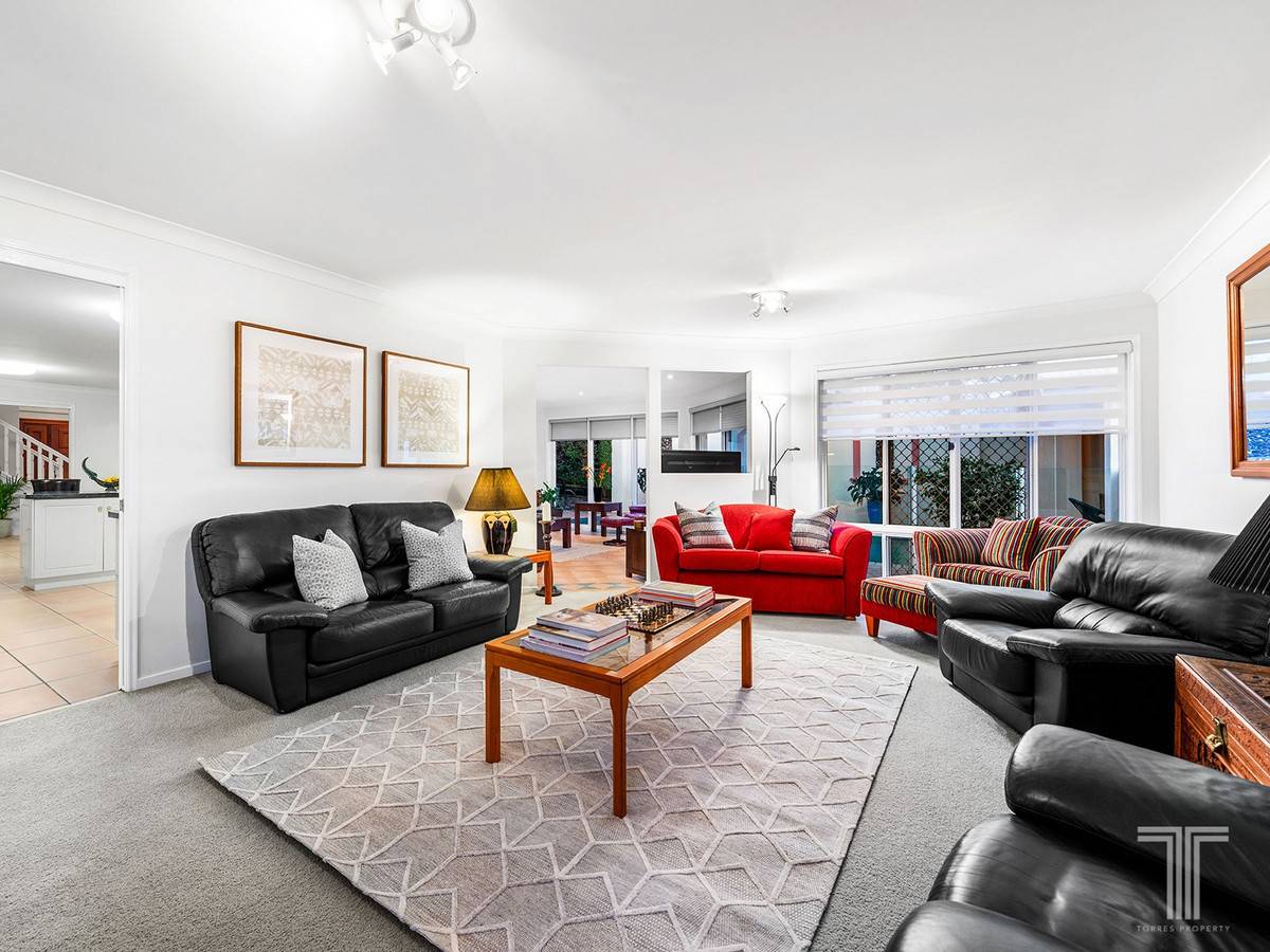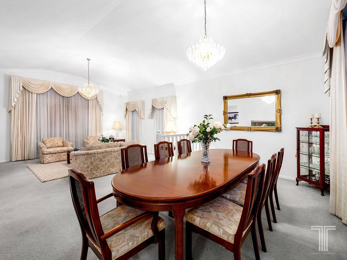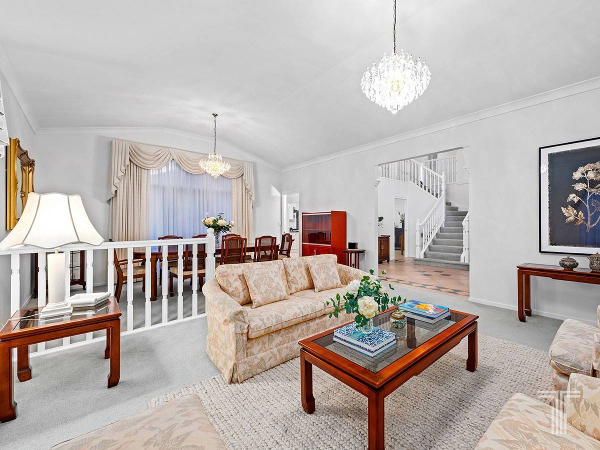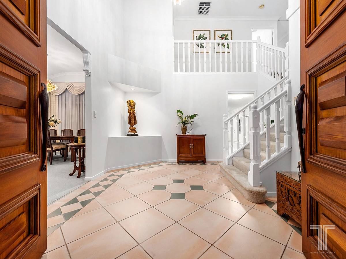 This elegant residence has been spaciously designed to create an open feel and also offers privacy within. Entering inside, the home will immediately impress with its soaring void, warm interiors and sparkling chandeliers. Flowing off the entryway, the formal lounge