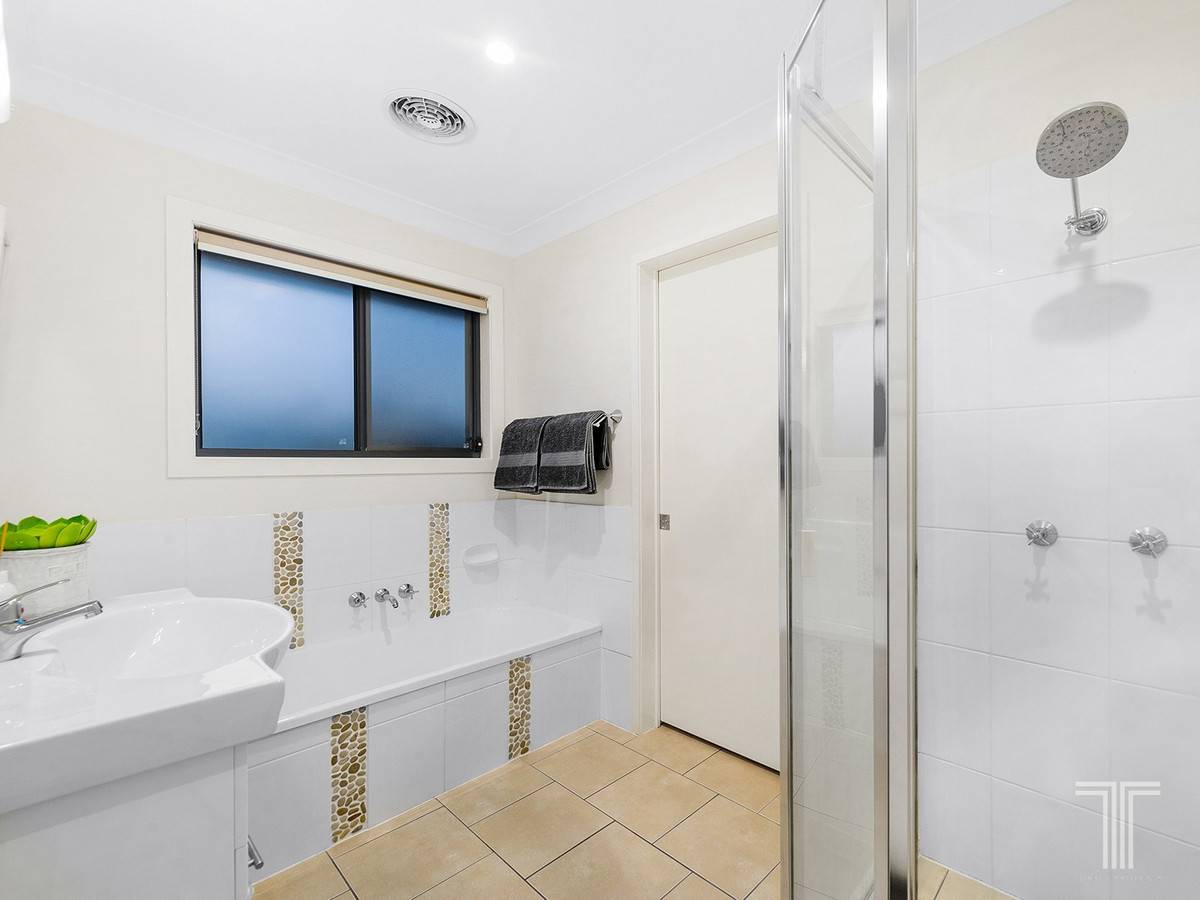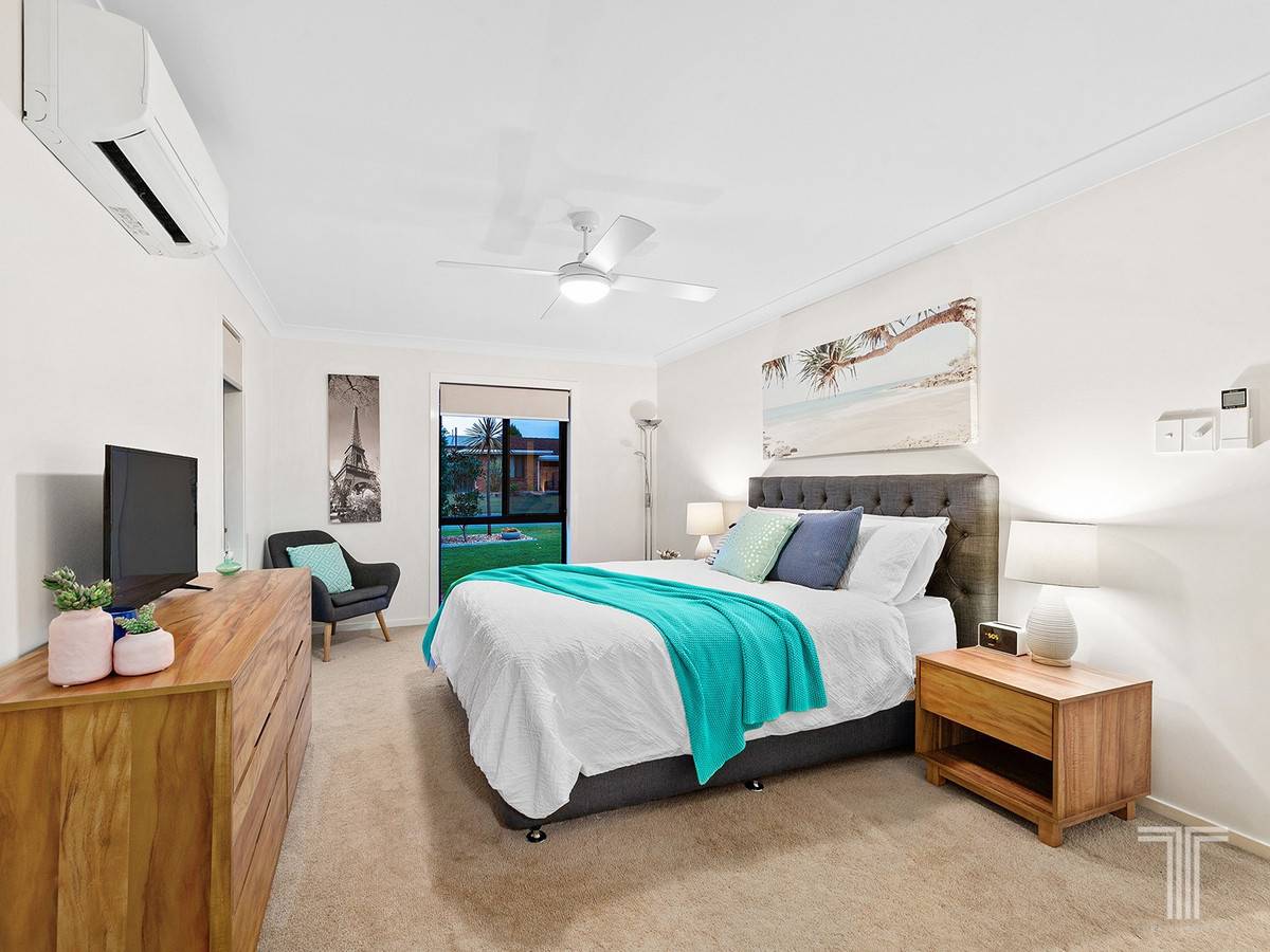 Completing the home are three bedrooms featuring carpet, ceiling fans and blackout blinds. Generously sized, the master suite also includes air-conditioning, walk-in robe and access to the two-way bathroom, while the additional bedrooms both feature built-in robes.