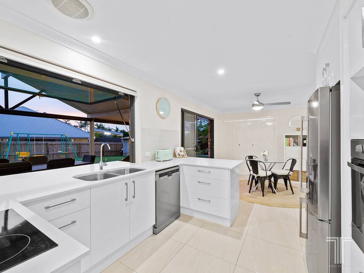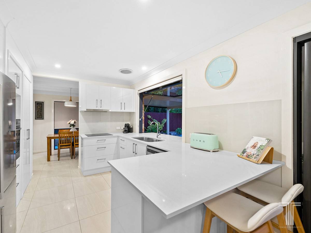 Centrally positioned, the modern kitchen adjoins the formal dining room and casual meals area. Featuring stone benchtops, breakfast bar, Westinghouse appliances and an induction cooktop, this culinary setting also reveals a servery window and ease of access out to the alfresco entertaining area. The perfect retreat to entertain guests; this covered terrace flows onto the spacious backyard, which boasts plenty of space to add a pool (STCA).