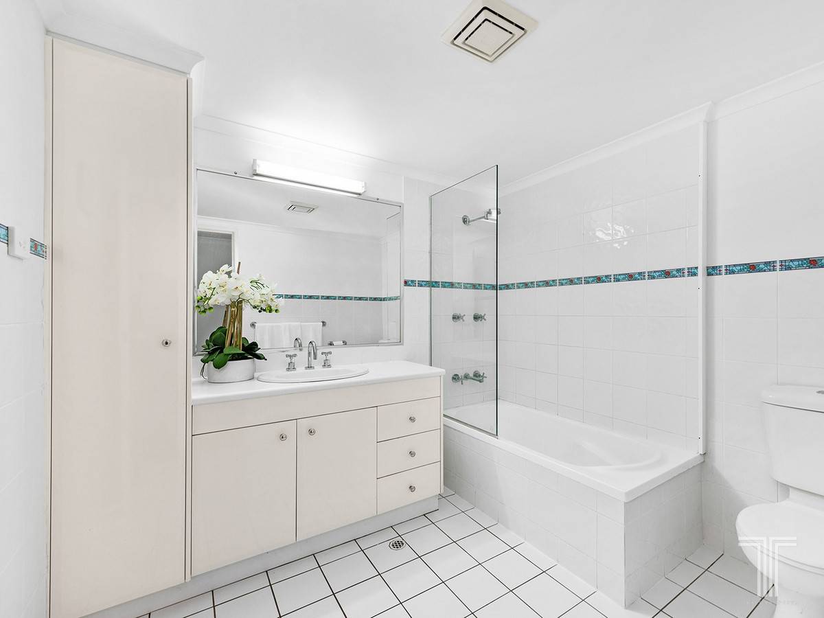 Serviced by an ensuite, the master bedroom harnesses cooling breezes drawn in from the rear balcony. Boasting air-conditioning, built-in double robes and access onto the front terrace balcony, there is no better setting to relax with your morning coffee.