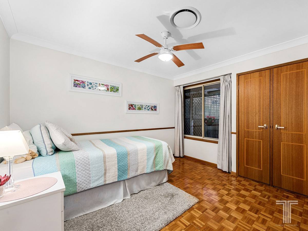 Perched atop a 669sqm allotment in a peaceful cul-de-sac within the Mansfield State High School catchment this beautiful home is set amongst leafy green gardens. Spanning a single level of living and hosting five generous bedrooms, this house has been thoughtfully updated to create effortless cooling in Brisbane's warm summer months.