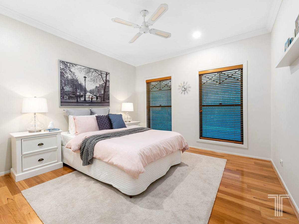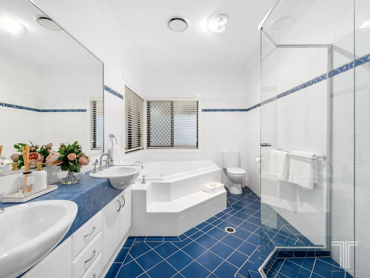 Positioned in a private wing, the master bedroom will impress with its plantation shutters, wall-length built-in robes and decorative columns leading to a large ensuite complete with dual vanities and relaxing spa bath.
