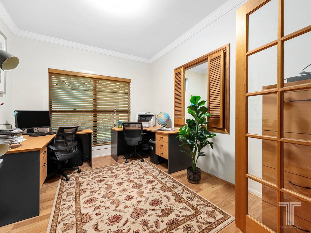 Stylish, spacious and open in design, step inside and make your way into the free-flowing lounge and dining area. Adorned with polished timber flooring, downlights and ducted air-conditioning, this central living space offers the ideal setting to unwind and relax. There is also a beautiful study with glass doors keeping a well organised room attractive and homely.