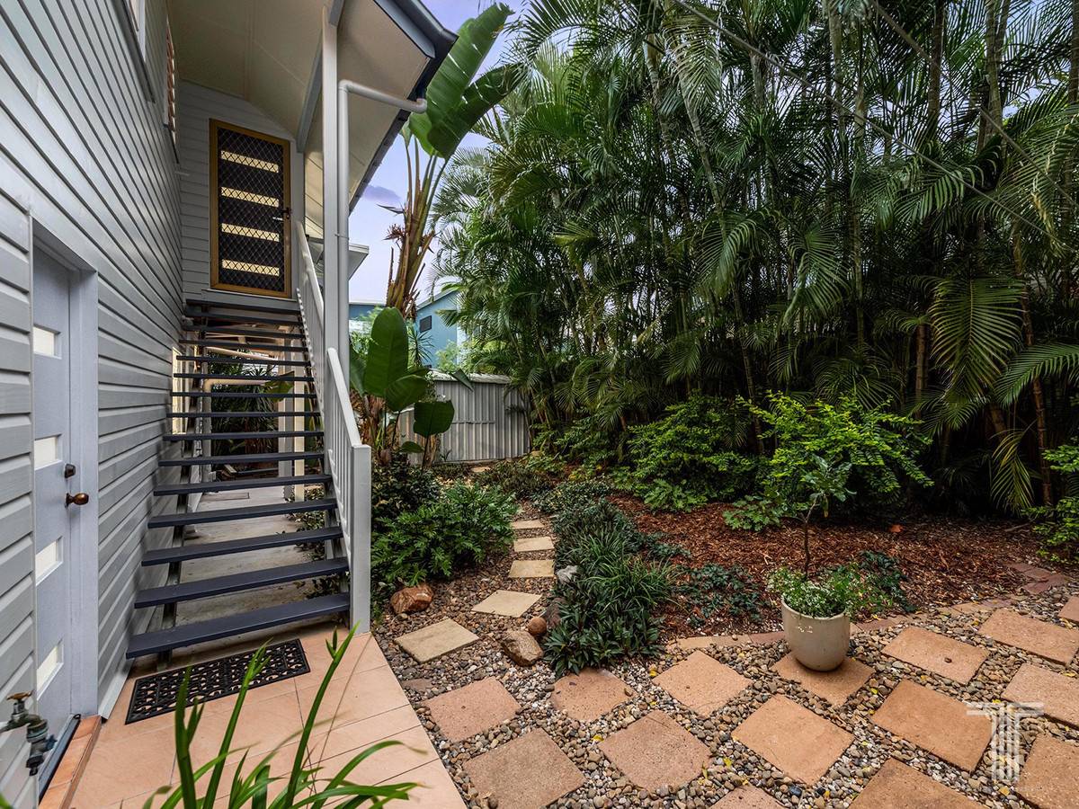 Positioned on a 436sqm block and framed by tropical palms and lush and leafy trees, the home's scenic surrounds create essential peace and privacy.