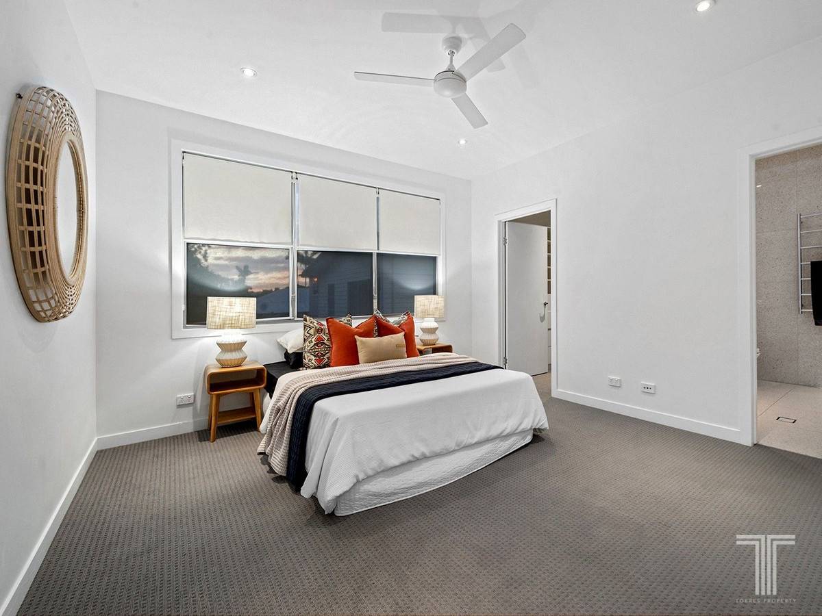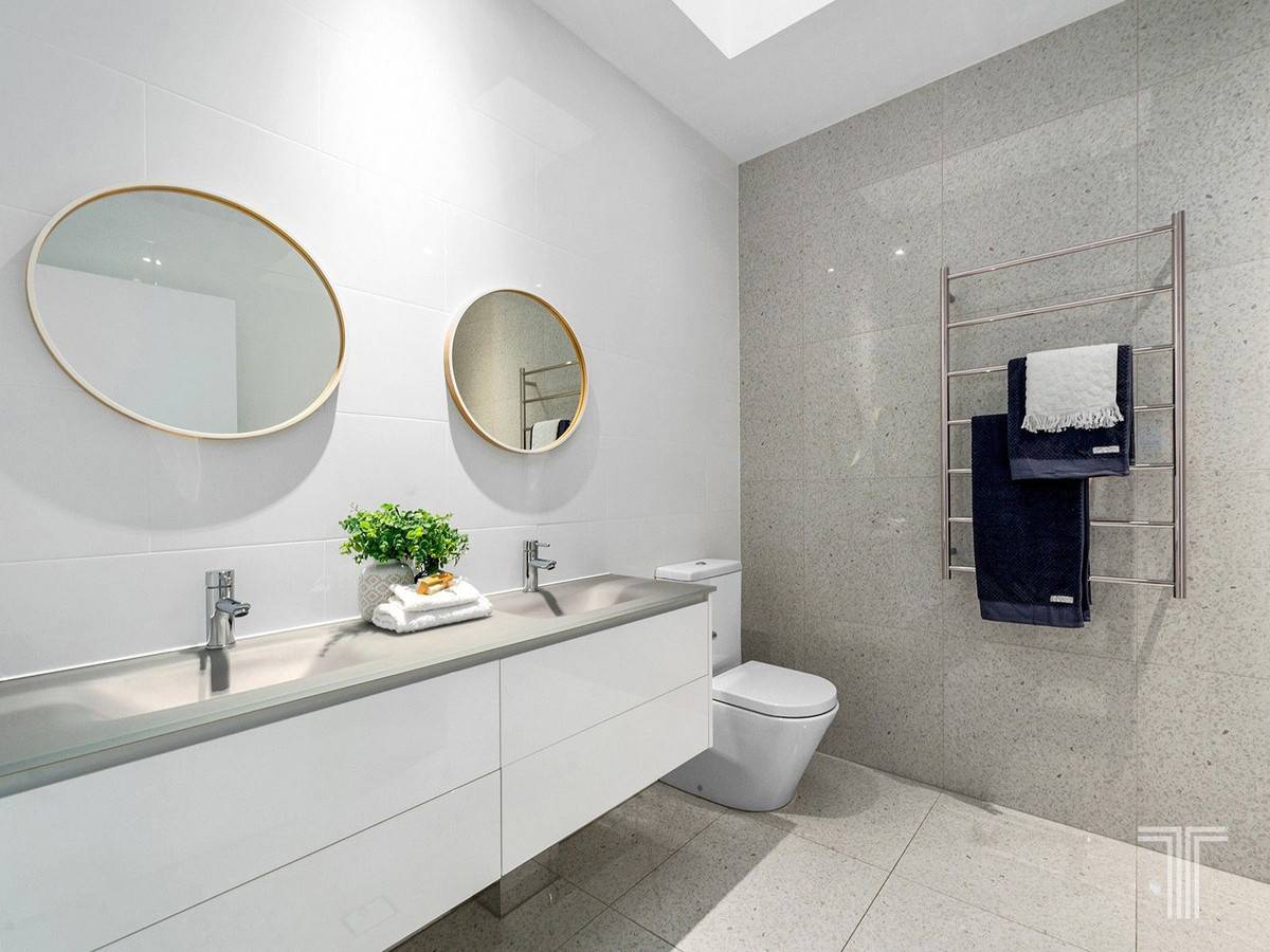 Lavishly proportioned, the master bedroom features a sleekly appointed ensuite and walk in robe where the two remaining carpeted bedrooms are positioned with a main bathroom. A laundry and additional powder room on the lower level combines with ample under stair storage space to cater for the needs of executive households.