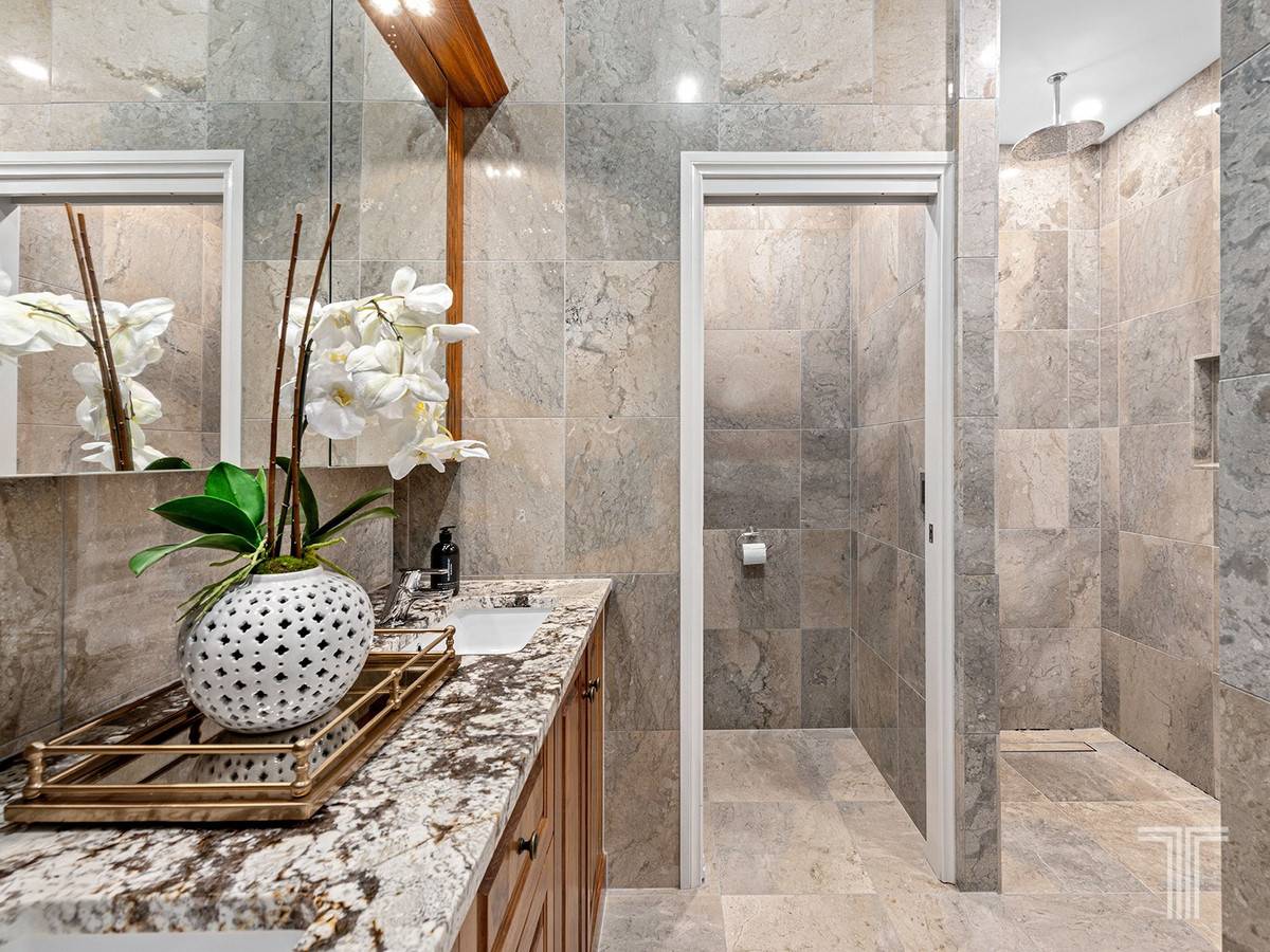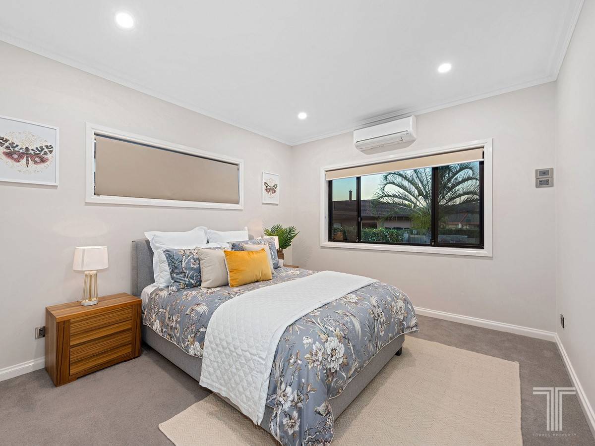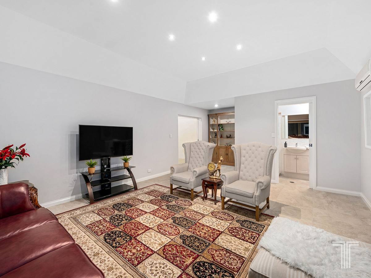 Embracing a floor all to itself, the master suite is situated on the third level. Featuring a lavish walk-through robe with full fit-out and deluxe ensuite showcasing marble floors, tiles, double sized shower and deep relaxing bath, this decadent suite is a true parent's retreat.