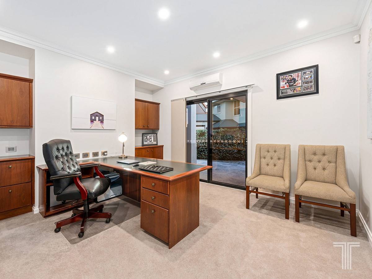 Completing the main living level, three bedrooms with walk-in or built-in robes are serviced with the ultimate granite slayed bathroom. Further, this grand residence includes a home office with private entry on the middle level.