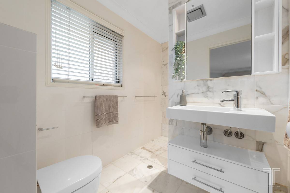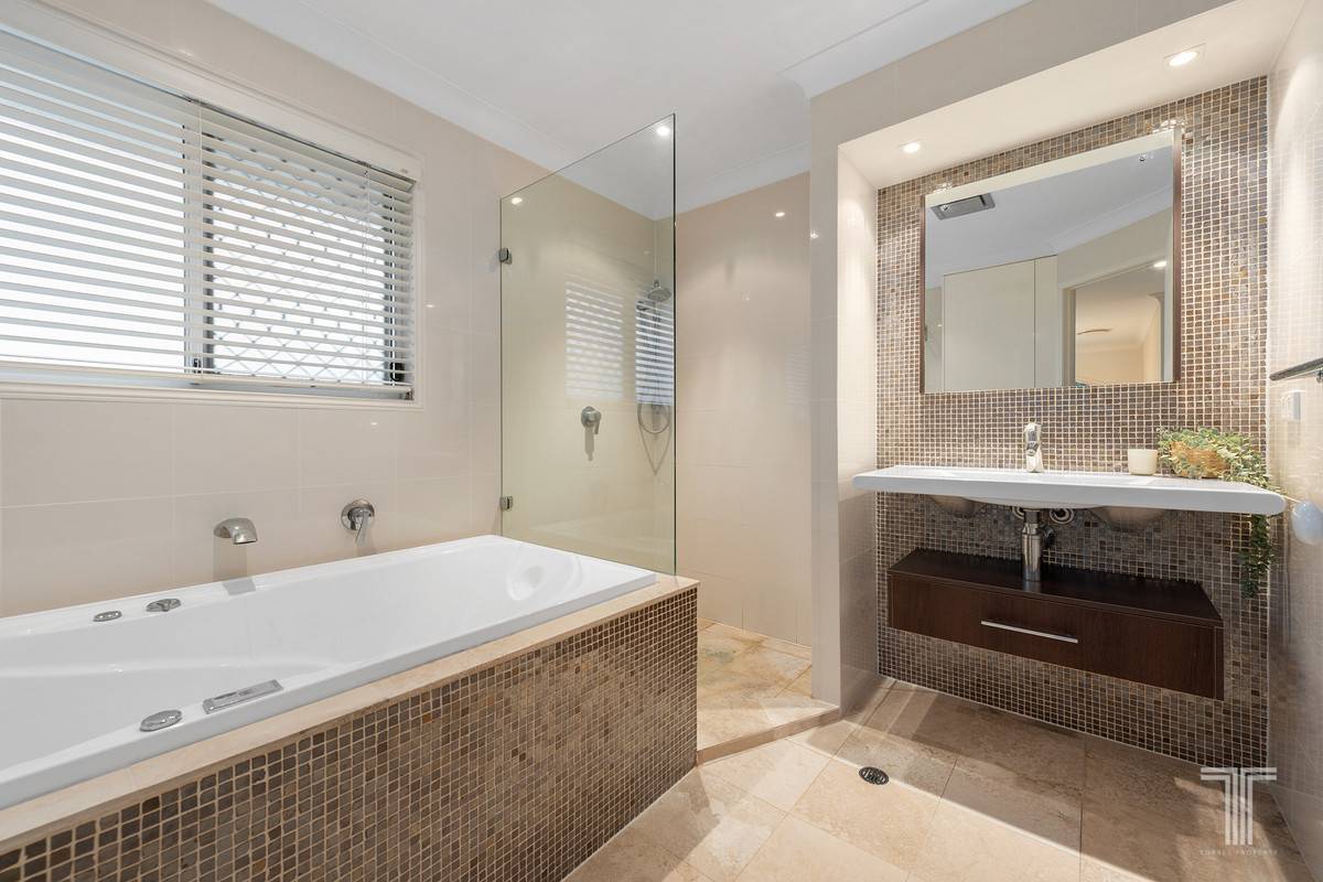 Ascending the stairs, the upper level hosts a fourth living space boasting pendant lighting and large windows gazing out across the most tightly held pocket of Carindale. Featuring four generous bedrooms on this floor, all enjoy separation of space. A private haven, the master suite reveals a walk-in robe and ensuite. Serviced by the family bathroom with a walk-in shower and spa bath, the additional bedrooms all include built-in robes.