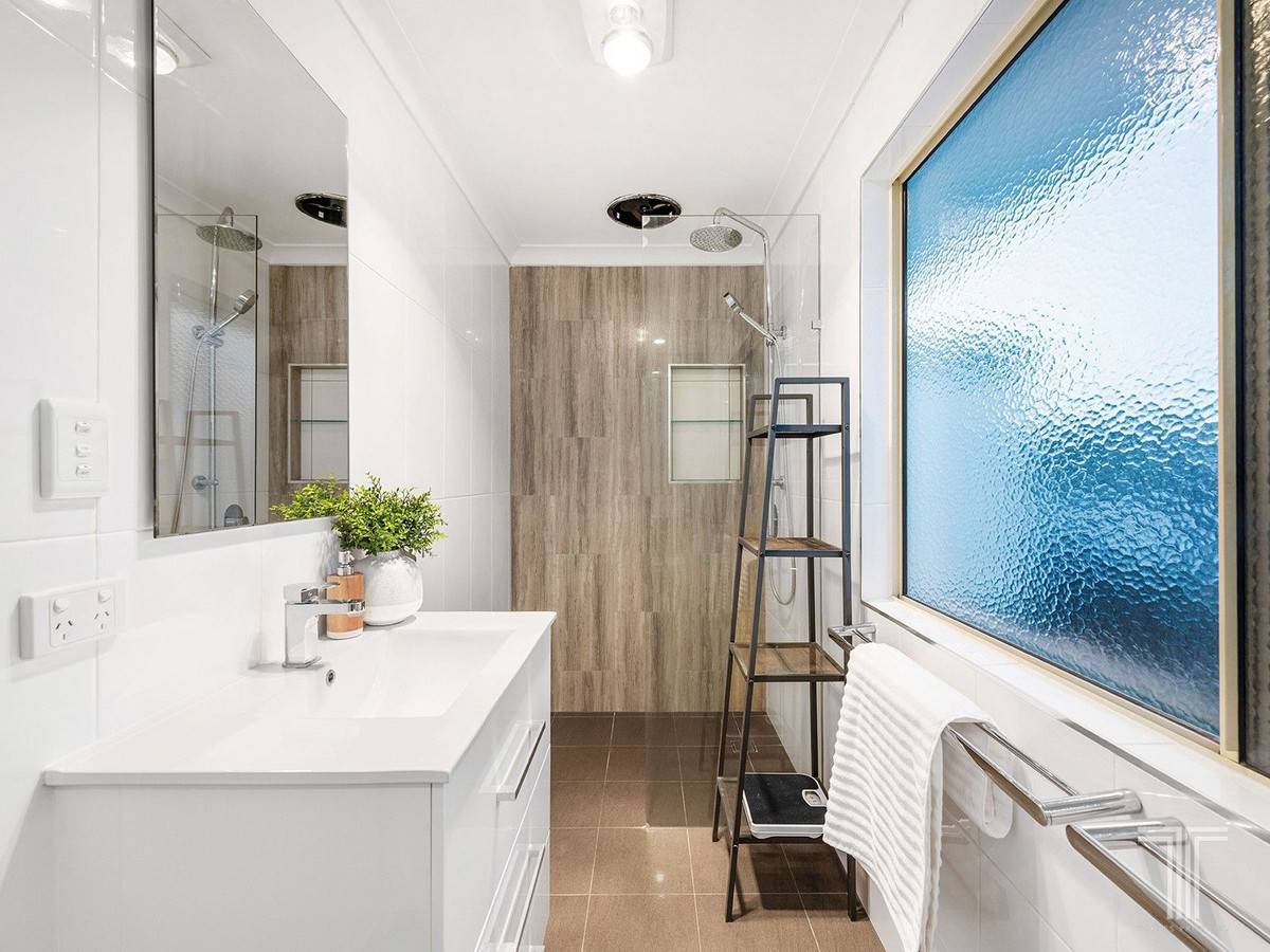 Ascending the stairs, you will find three light-filled bedrooms boasting air-conditioning and ceiling fans. A private retreat, the master bedroom reveals a walk-in robe and renovated ensuite. Both featuring built-in robes, the additional bedrooms are serviced by a second modern bathroom with a relaxing rain shower.