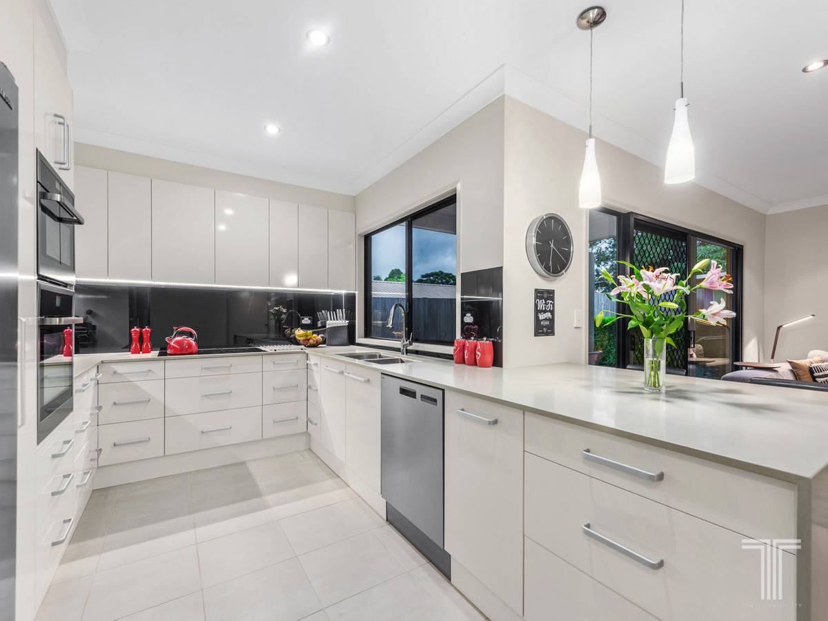 Centrally positioned, the entertainer's kitchen is modern in design. Featuring Asko appliances and a 900mm induction cooktop, this culinary setting overlooks the open plan family room providing further living space.