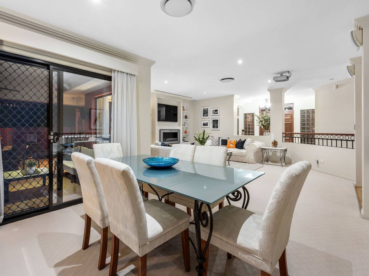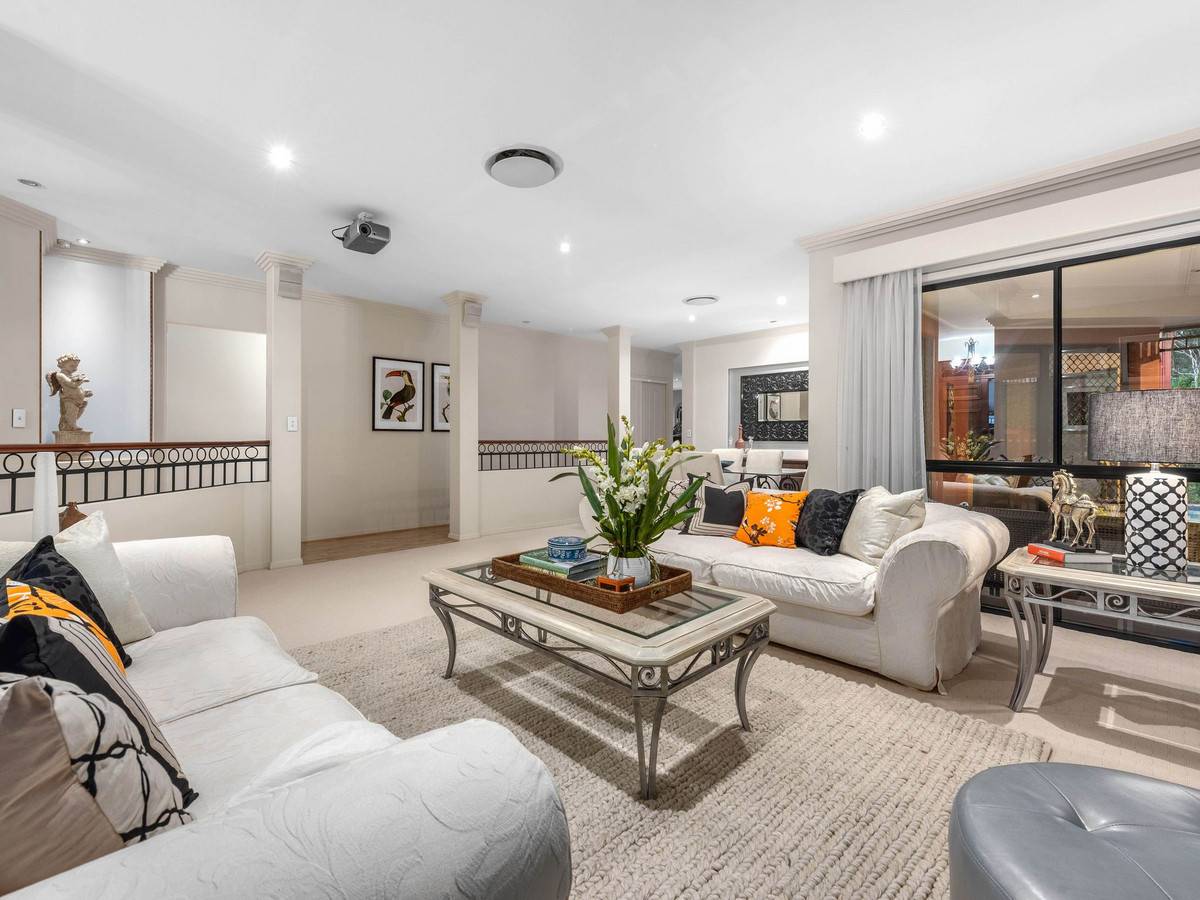 Leading effortlessly off the grand double door entry, the foyer leads into a formal lounge and dining room. Adorned with a projector, screen and ornate iron railings, this living space exudes timeless sophistication.