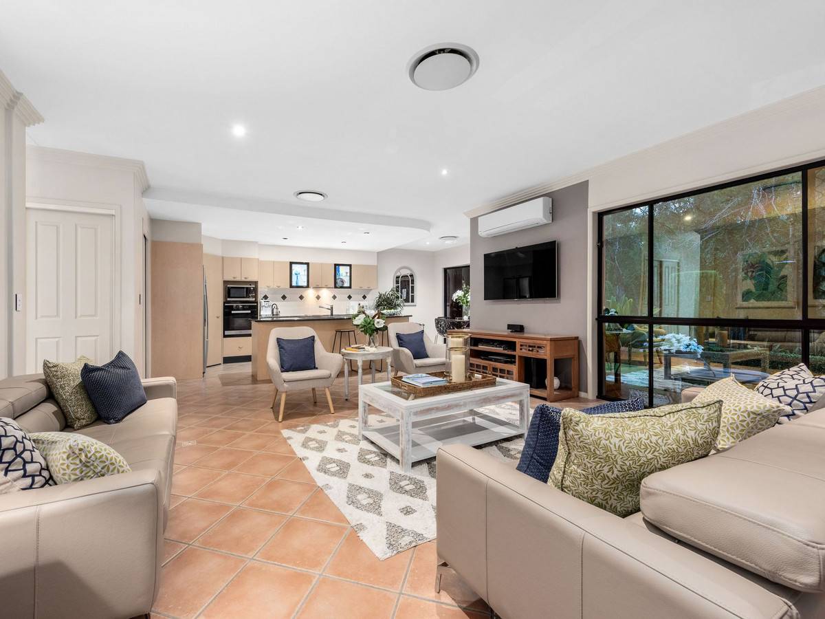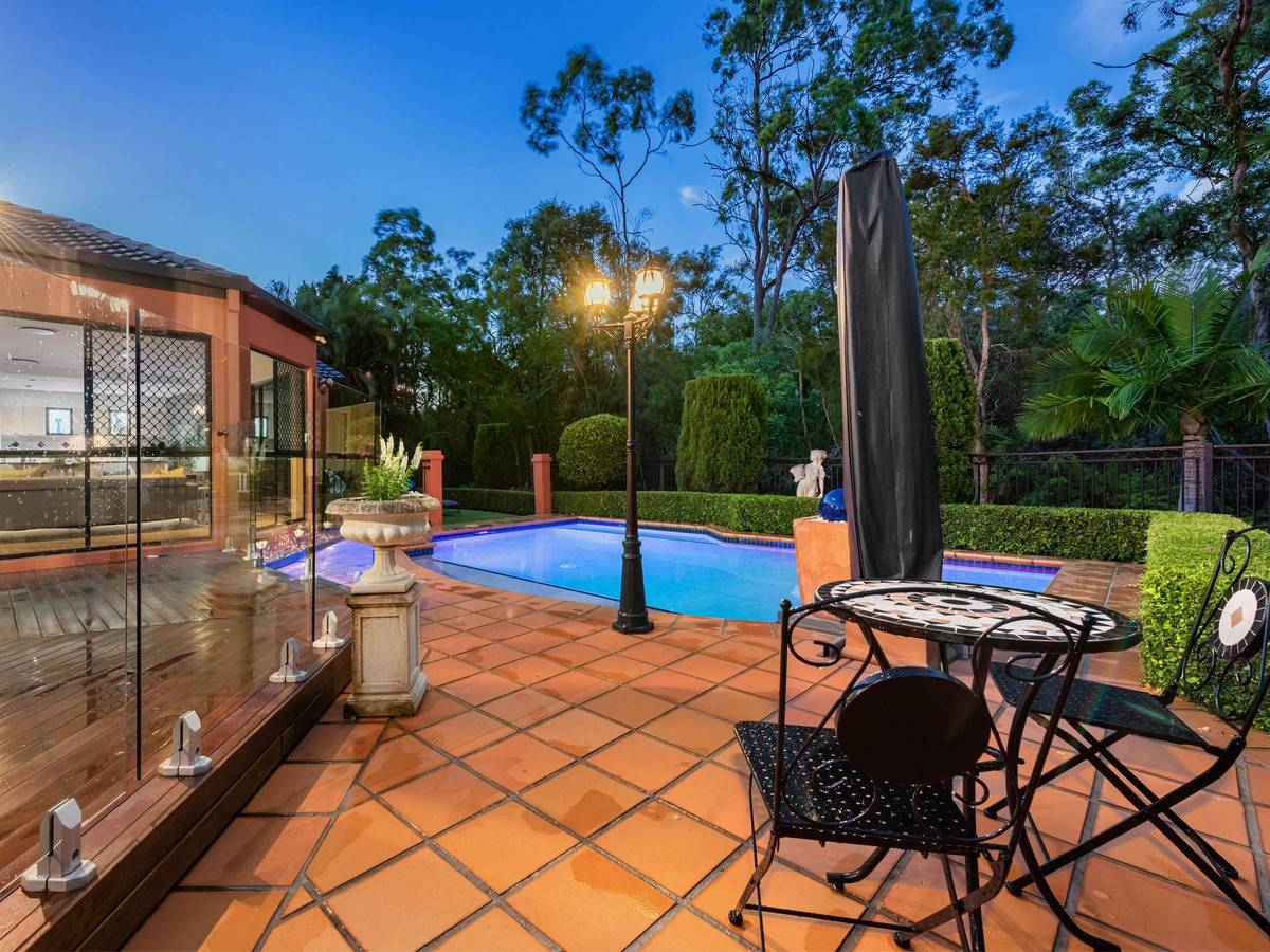 Stepping outside, the exceptional entertaining area boasts a private tranquil retreat. Hosting an expansive undercover terrace featuring outdoor speakers, heaters and roll-down cafe blinds, this alfresco setting overlooks the sparkling pool, sunlit patio, manicured gardens and scenic nature reserve.