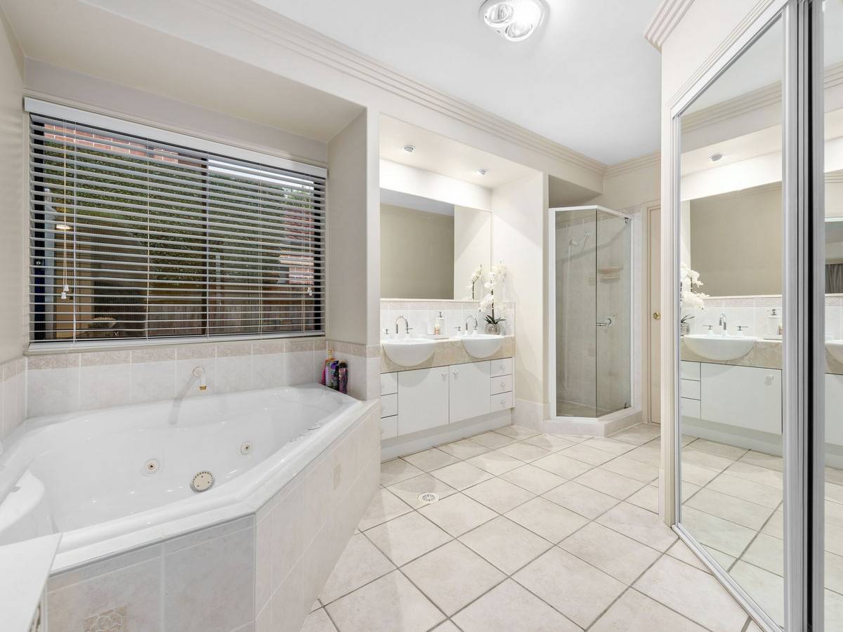 Finalising the home's layout are four generous bedrooms, including a private master suite with a walk-in robe, access onto the terrace, and an ensuite with dual vanities and a spa bath. Serviced by the family bathroom, the additional bedrooms all include built-in robes.
